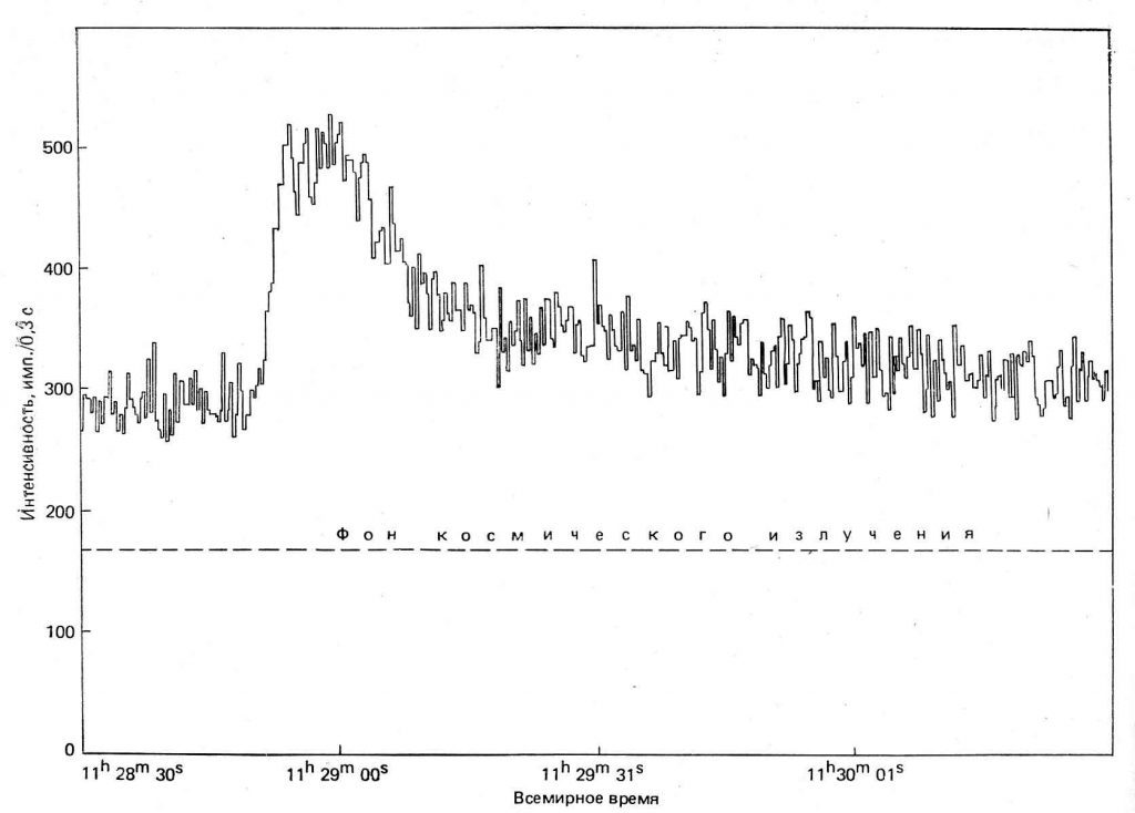 Фото: Наука / Так выглядит запись гамма-всплеска от «быстрого бластера» MXB 1733-335, полученная рентгеновским телескопом-спектрометром «Астрона». Апрель 1983 год