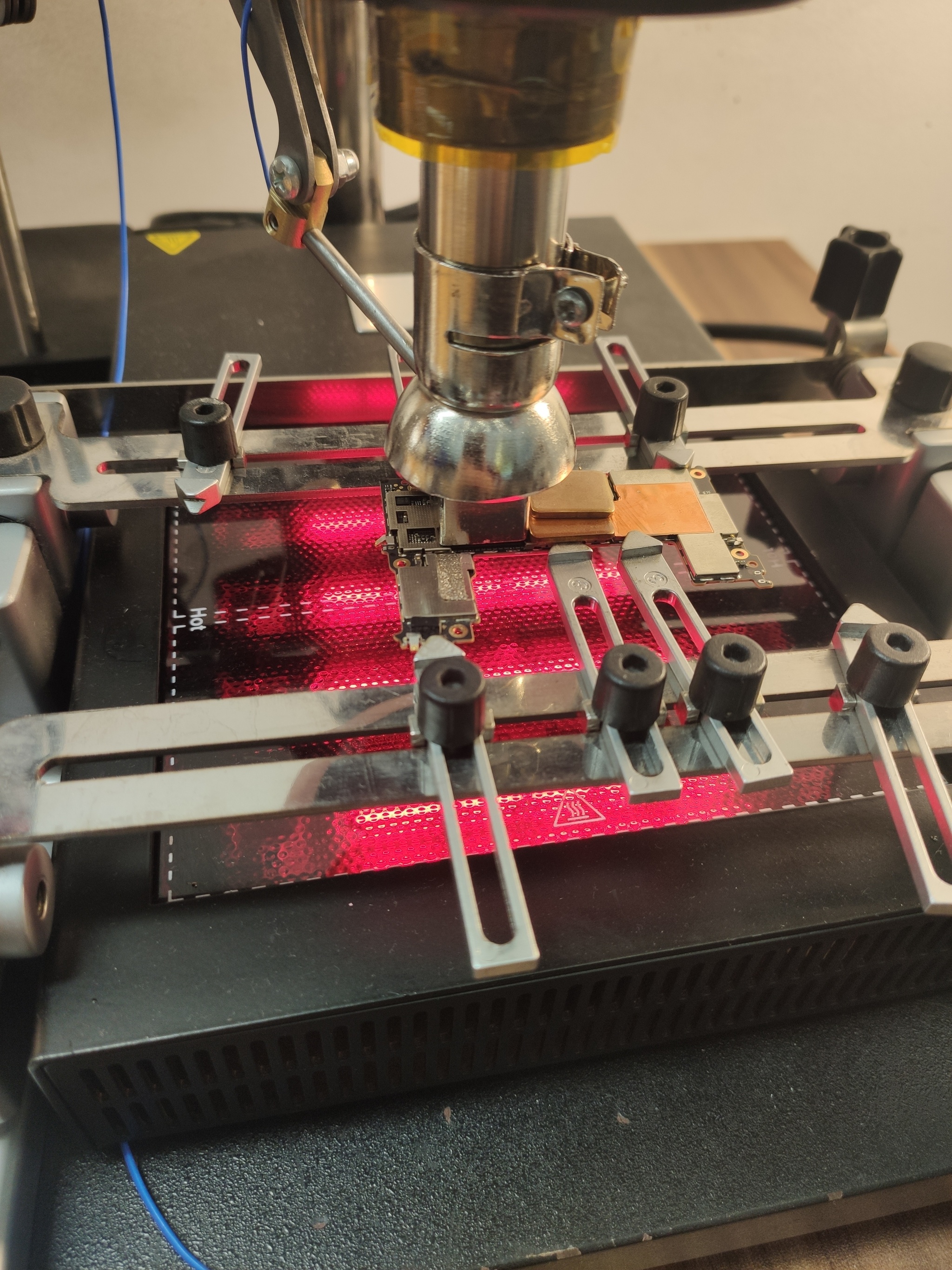 И все, кто мало-мальски занимается компонентным ремонтом, это знают. Поэтому все катальщики, которые не понимают ничего в диагностике телефонов, умеют делать такие ремонты. Ведь тут важны чисто ремесленнические скиллы, которые за годик доводятся до идеала. Но многие мастера на этом и останавливаются, думая, что реболлить двухэтажные процы – это и есть пик профессионализма в этой сфере и гордятся тем, что они уже умеют больше, чем иностранные специалисты с юноны и апрашки, которые на потоке меняют дисплеи и акб. К сожалению, после таких катал, приходит куча укатанных (такая вот тавтология) в хлам телефонов, большинство из которых можно было восстановить, сделав правильную диагностику. Как это происходит у них: сначала снимают проц с оперативкой, реболлят их, ставят обратно, телефон не заводится; точно, есть же еще флешка, снимем-ка ее; ой все равно аппарат компом не видится, надо еще зареболлить проц, вдруг недосел или шары слиплись. Все равно не видится. -алло клиент, у вас тут сложный случай, нужно донорскую плату покупать полностью рабочую за 10к, чтобы сделать свап на живую доску. Сделали свап, опять че-то не включается. Конечно, сначала была одна проблема, а в процессе таких прожарок процессор или ufs-память уже померли, в утиль.