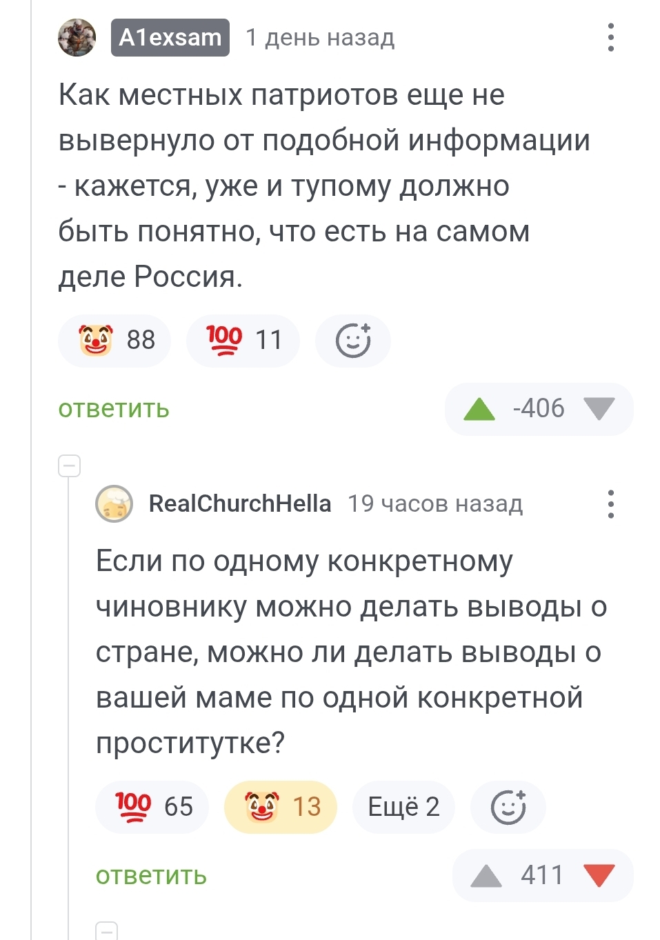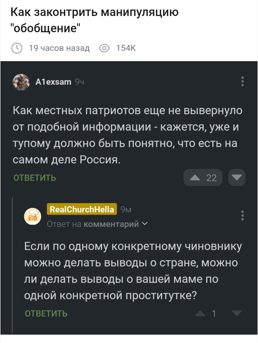В продолжение поста от некого @RealChurchHella, который нагнал охраноту на вполне адекватный комментарий через свой пост, чтобы прднять свой коммент и заминусить мой