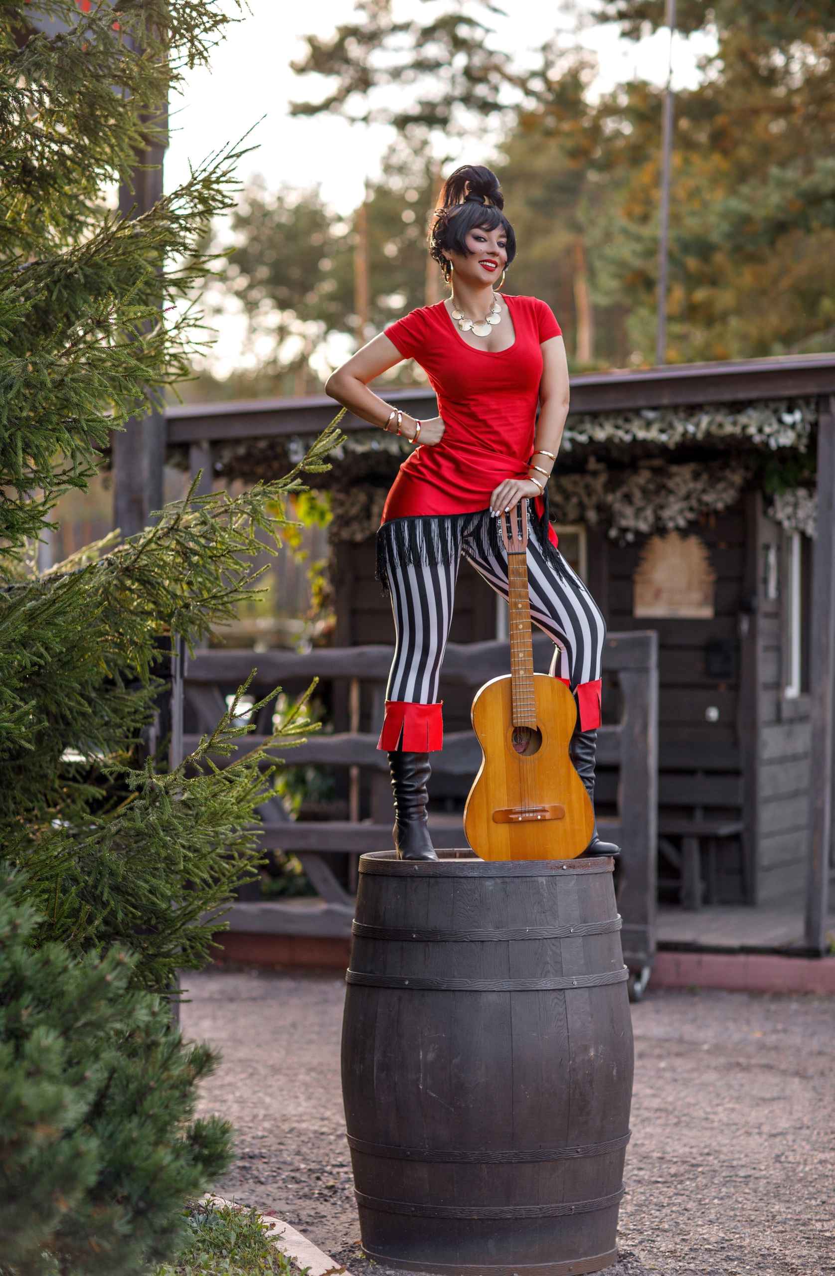 Эта яркая женщина Тамара Вишнева, балерина Театра оперетты, жена режиссера Вячеслава Котеночкина. Она действительно, иногда устраивала зажигательное танцевальное шоу на бочке!