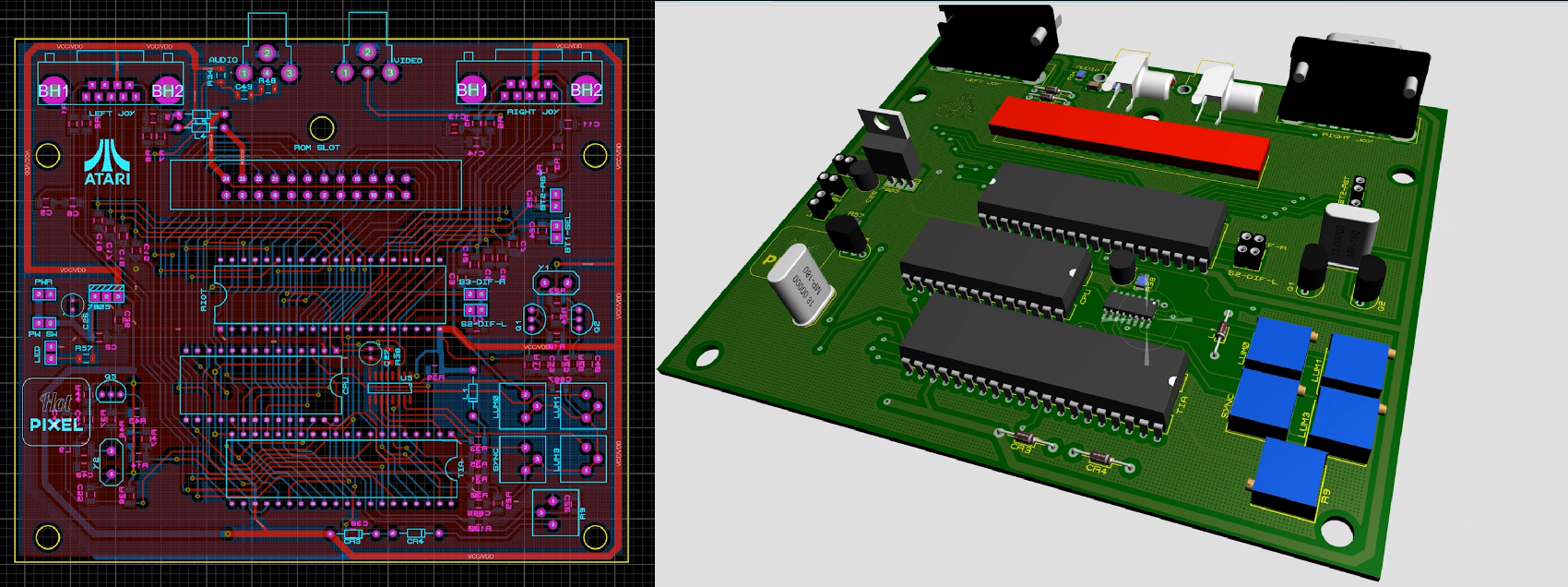Atari 2600 или ее клонов у меня никогда не было, да и, в общем-то, не интересовался ею в принципе. Идея собрать свой клон с нуля родилась спонтанно после просмотра видео на Ютубе. Порадовала большая фанбаза западного сообщества, где она долгое время было массовой домашней системой, ведь официально приставка выпускалась целых 14 лет! Еще одной монетой в копилку этого проекта стала относительная простота схемы, ну и спортивный интерес. Все фотографии сборки были сделаны из видео, поэтому сразу извиняюсь за качество. Много картинок!