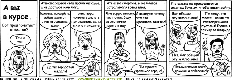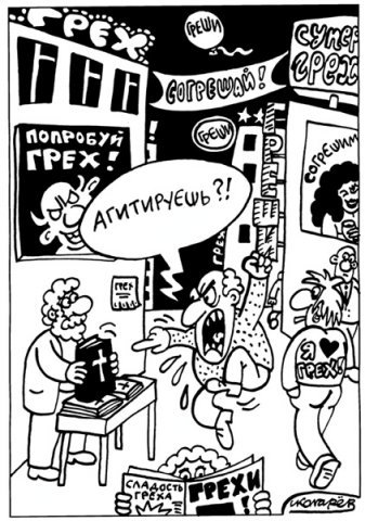 Атеисты не агитируют совершать грехи. Атеист не совершает плохих поступков потому что это плохо и он это понимает, а религиозный человек не совершает того, что ему запрещает религия и не думает своей головой.