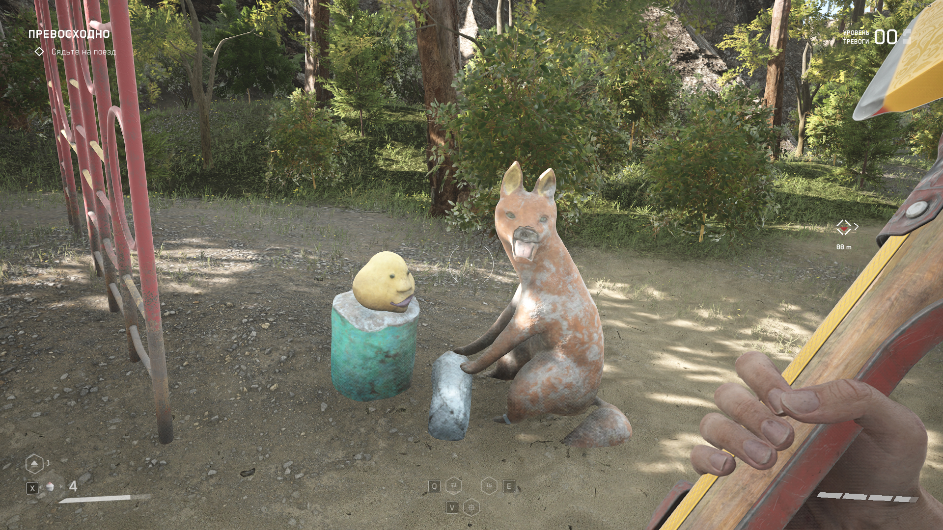Еще там, в игре, перед отправлением поезда есть детская площадка с жутковатыми деревянными скульптурами (привет, Аленушка!), но их не зафотала.