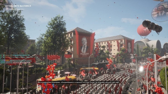 После короткой экскурсии по городу-заводу, парада, встречи с близняшками и получения ключа от автомобиля, нашего героя направляют на местную ВДНХ. Мостиком между вступительной частью и началом экшена и хаоса стал перелёт на автомобиле от главного здания к выставке, что уже само по себе является необычным ходом. Но обо всём по порядку.