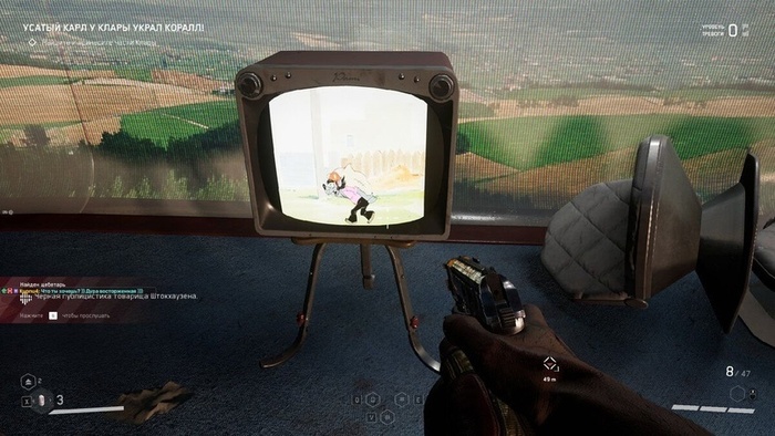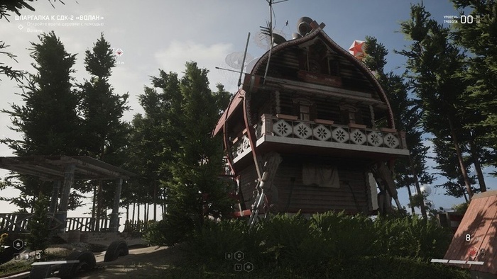 В игре можно быстро сохранить прогресс в специальных локациях, называемых комнатами отдыха. Там установлен телевизор, который постоянно показывает советский мультфильм «Ну, погоди!», и есть терминал для быстрого сохранения и ремонтный шкаф. С помощью этого шкафа мы можем создавать патроны, оружие и расходные материалы, а также изучать навыки, которых здесь много, но для быстрого использования можно выбрать лишь два. Кроме того, здесь можно управлять складом. Интересно, что автомат Калашникова я получил только к середине игры, но патроны к нему находил с самого начала, и до получения автомата они служили источником ресурсов, так как шли на разбор. Конечно, и после получения оружия часть патронов продолжала идти на разбор, но уже в меньших объёмах. «Озадаченный холодильник», как его называют на стримах, помимо шуток и жарких фраз, много рассказывает о мире игры – стоит прислушиваться. Также обращайте внимание на вашего голосового помощника Храза, он сыграет свою роль, но какую именно – я не скажу.
