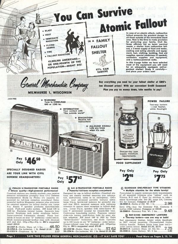В 1949 году, после проведения СССР первого ядерного испытания, президент Гарри Трумэн (Harry S. Truman) организовал Федеральную администрацию по гражданской обороне (FCDA), запросив у конгресса миллионы долларов на строительство системы защиты от ядерных ударов. В конце 50-х годов началось финансирование местных департаментов гражданской защиты, в обязанности которых входила организация и снабжение бомбоубежищ. Однако самый сильный импульс их строительству придал молодой президент Джон Кеннеди (John Fitzgerald «Jack» Kennedy), который в 1961 году, в разгар Карибского кризиса, призвал сограждан проявить сознательность и самим позаботиться о своей безопасности. Граждане стали строить частные укрытия от советской ядерной бомбы.