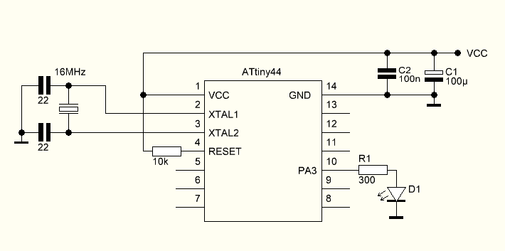 Микроконтроллер ATtiny44 отлично подходит для маленьких и дешевых проектов, а поддержка средой программирования Arduino IDE заметно упрощает работу с микроконтроллером.