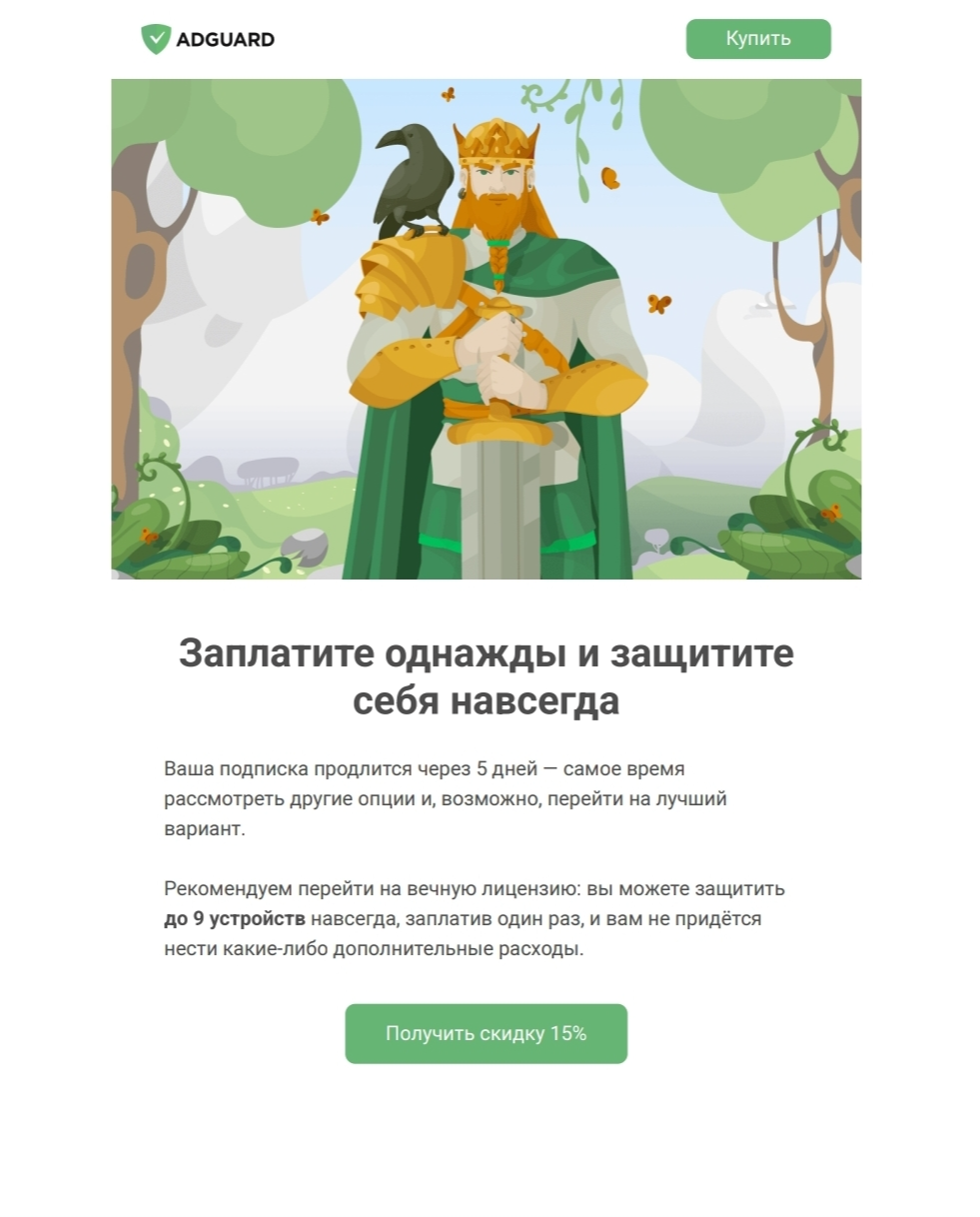 Для тех, кому пришло такое письмо счастья. Чтобы продлить старую лицензию по 30% скидке, достаточно сделать следующее: перейти по ссылке и заменить в конце ссылки UPGRADELIFETIME15 цифру 15 на любую другую ( например UPGRADELIFETIME30, или чем угодно всю фразу заменить)