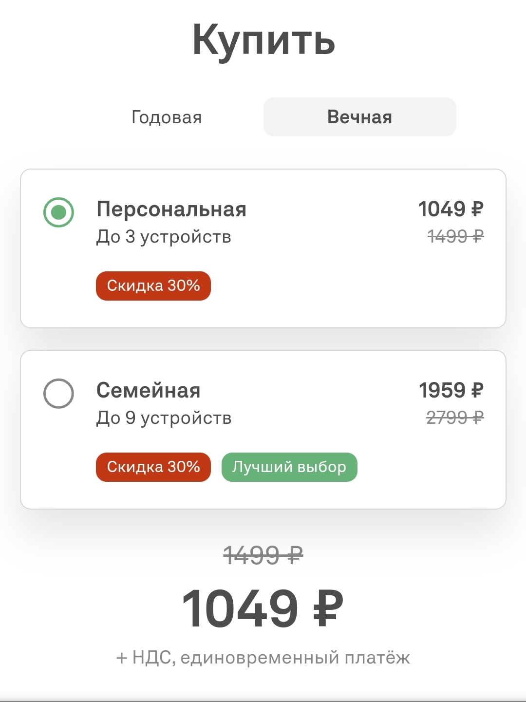 И вжух, у нас активируется 30% скидка на действующую лицензию.