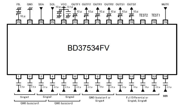 Выходное напряжение шума (FRONT,REAR) … 3.8 μVrms