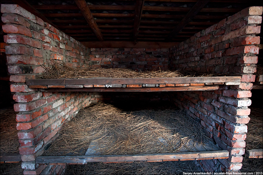 В лагере Аушвиц нары были деревянными, в Аушвиц-Биркенау как деревянные, так и кирпичные с деревянным настилом.