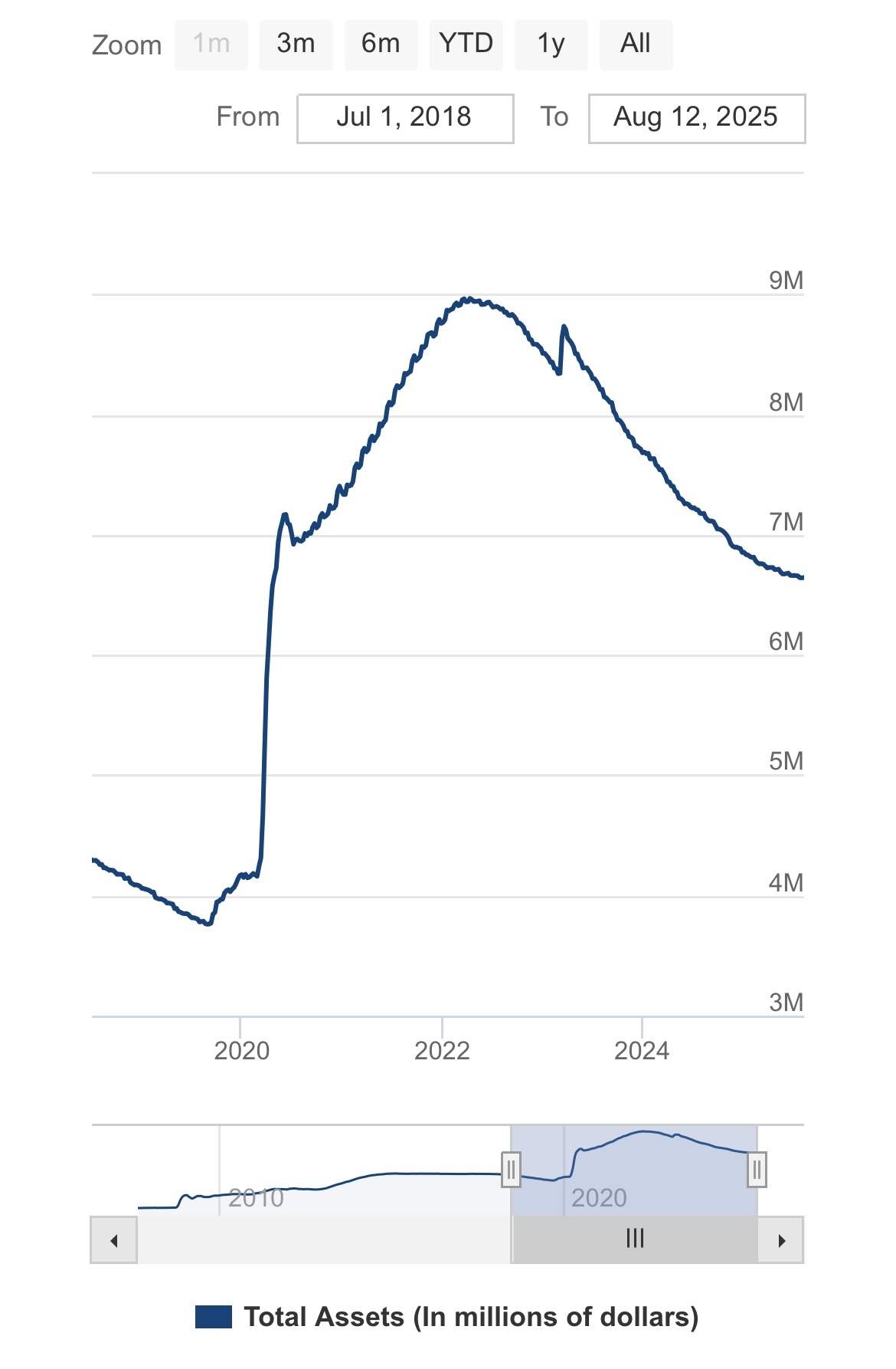 Сегодня многие говорят о новых данных по инфляции или заявлениях Пауэлла. Это симптомы. Но чтобы поставить диагноз, нужно смотреть не на симптомы, а на патологоанатомическую картину. Давайте проведем вскрытие самого главного трупа на мировой финансовой сцене — баланса Федеральной Резервной Системы.