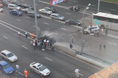 "Мерседес" ударился в "Ниссан", от него оттолкнулся и попал на "Хёндай" и после этого – в бордюр. Это я узнал от "гайцов" лично и полковника МЧС, который потом уехал", – сказал очевидец.