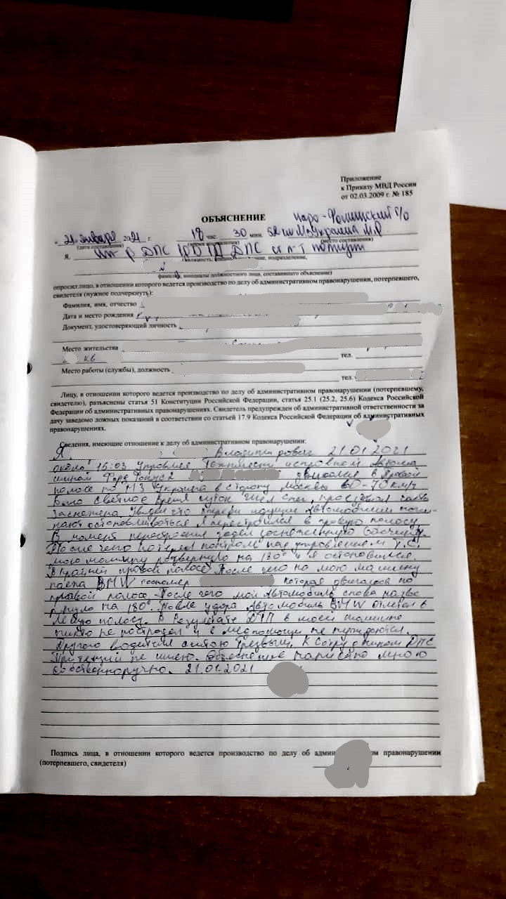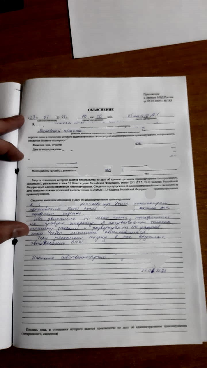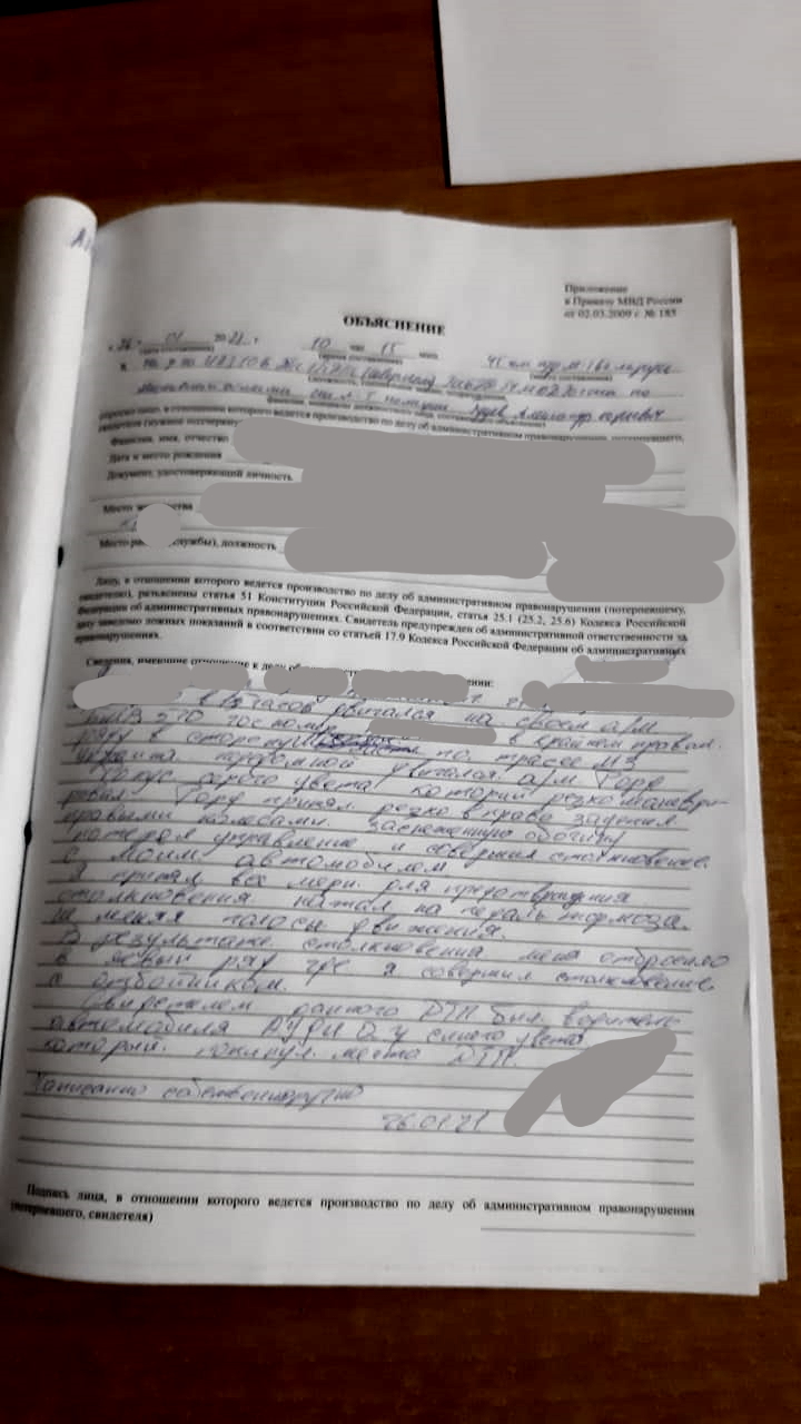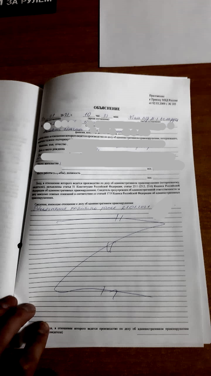 Ниже прикреплены объяснения, мои, его и моего свидетеля.