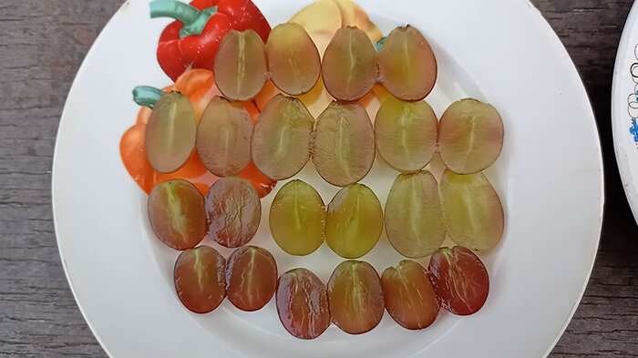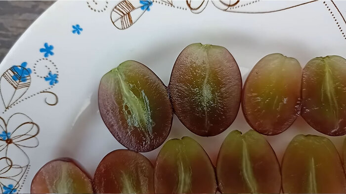 Вкусу Алисы все хвалят. Вкус богаче Щелкунчика, сахаронакопление очень хорошее, приятные фруктовые нотки. Мякоть очень плотная и хрустящая. И плюс не забываем, что это кишмиш 1 класса!
