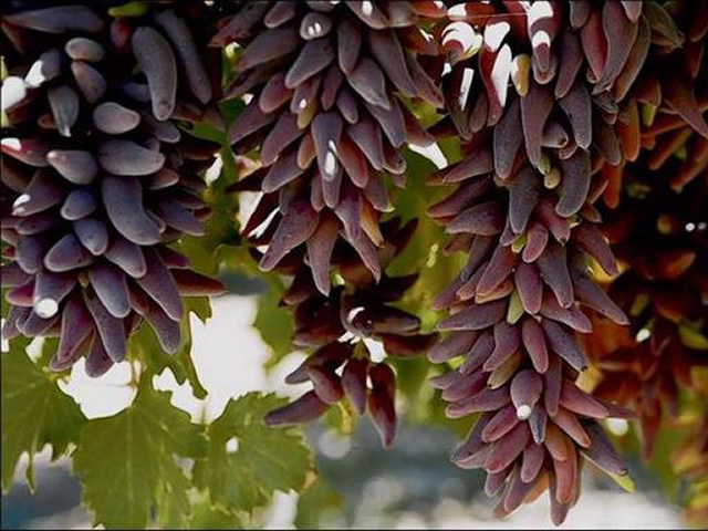 На вид, конечно, уникальны. Аватар - кишмиш 1 класса, синего цвета, вытянутой формы (до 5 см) и с ямочкой на кончике. Со сроками созревания не все так радужно, в более северных регионах придется к нему найти подход, если приспичит посадить. И, говорят, он очень хорошо показывает себя на арке.