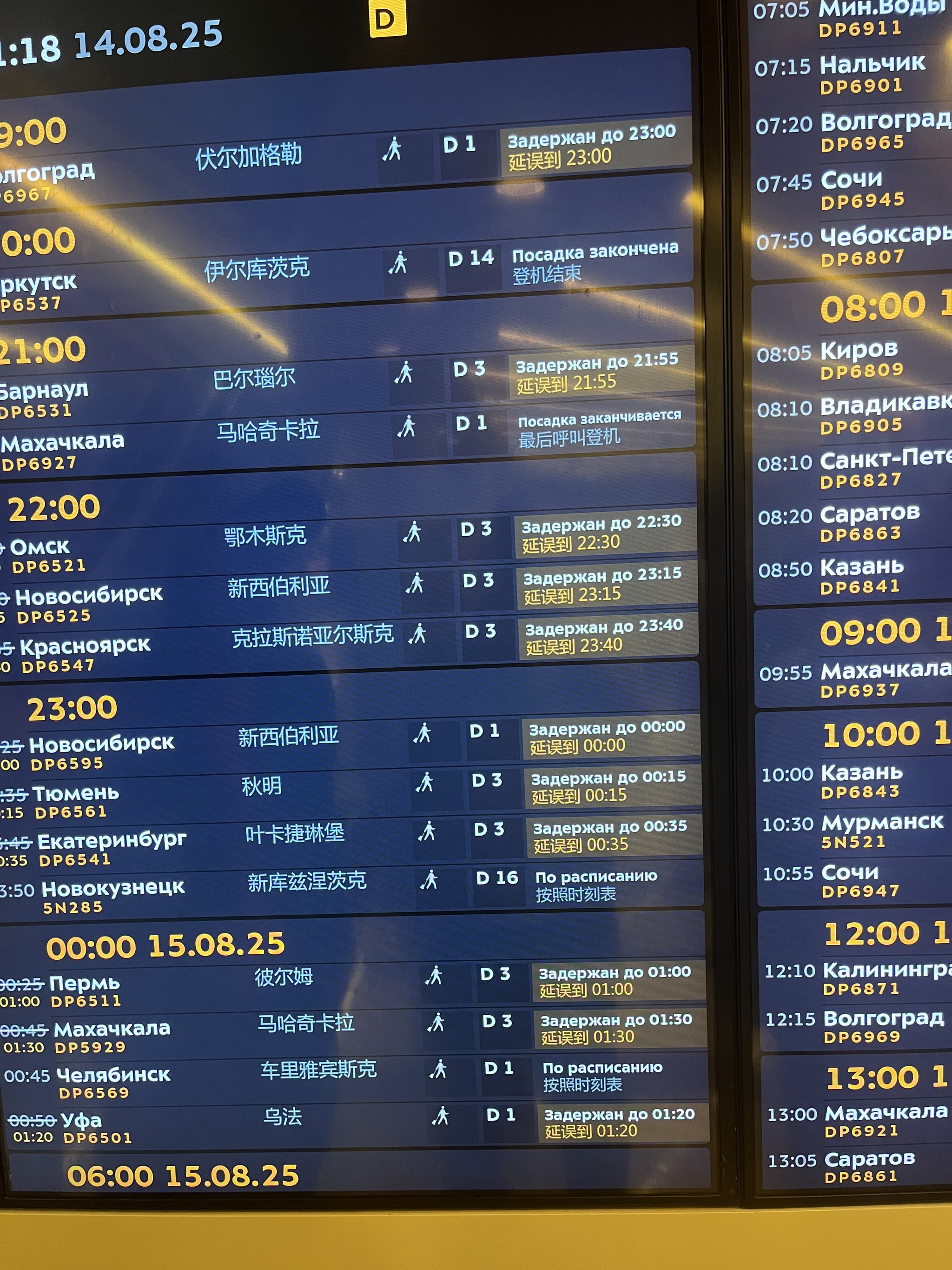 Откладывали внутренний рейс уже туеву кучу раз на 19:50, 20:15, 20:50, …, 22:45..