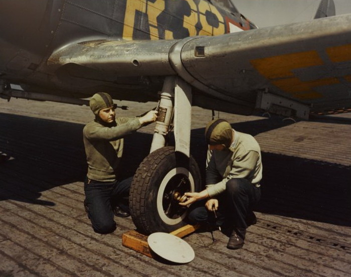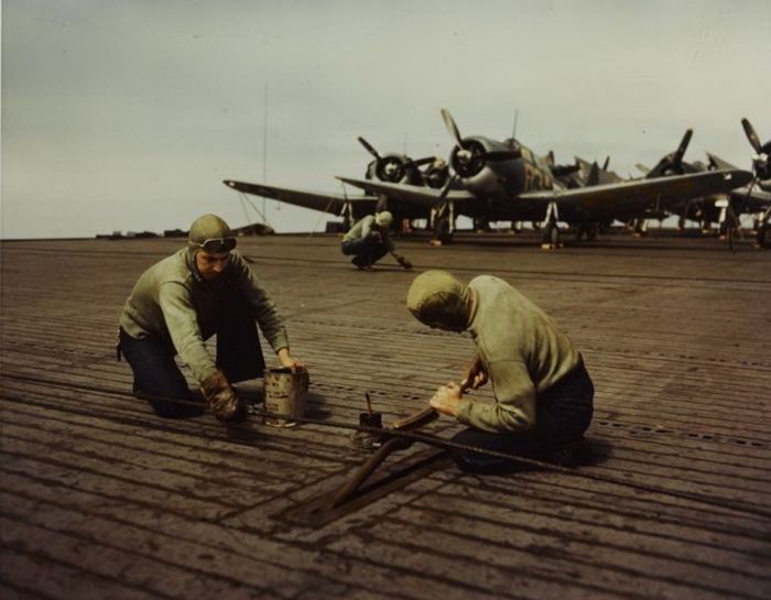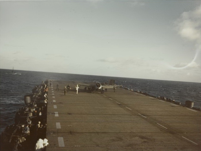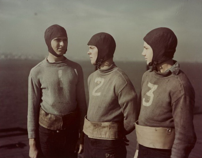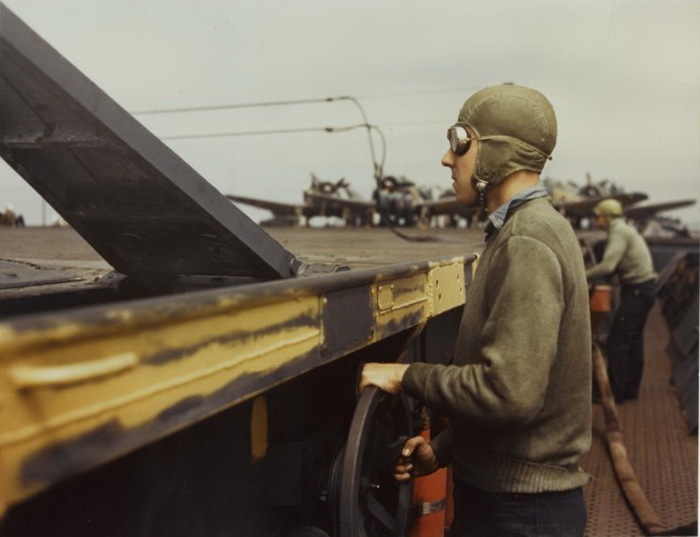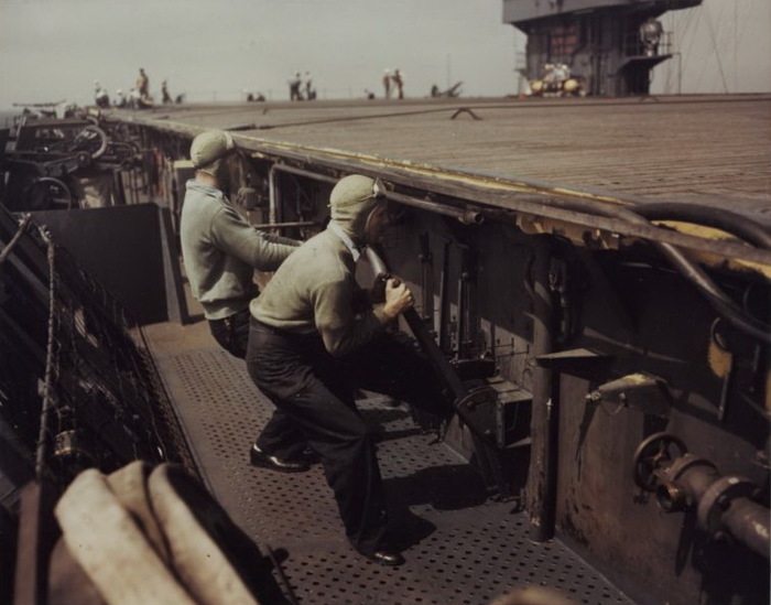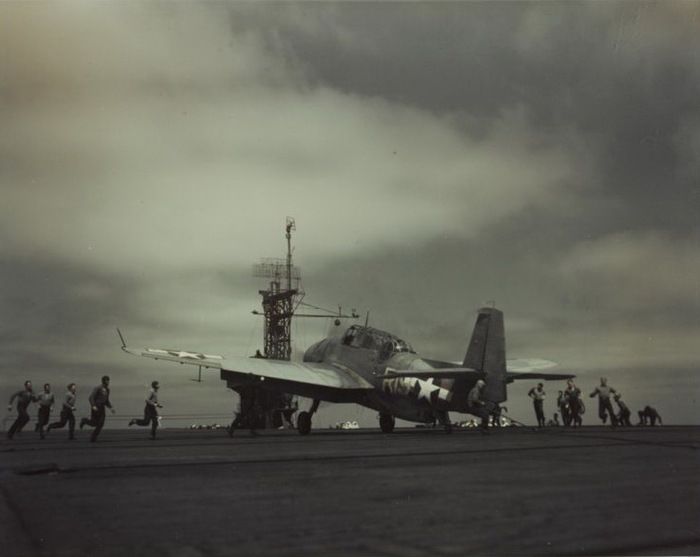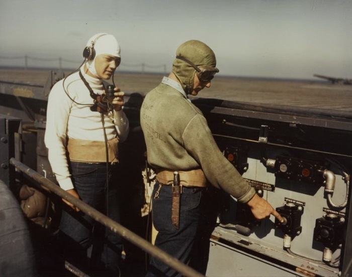 (Снимки сделаны на эскортном авианосце USS CVE-58 Corregidor во время съемок учебного материала для экипажей авианосцев в 1943 году)