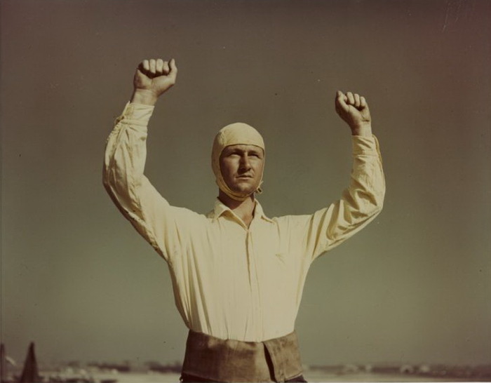 Получив сигнал о готовности авианосца к приему самолетов, пилот переключал свое внимание с поста управления полетами на левый борт кормовой части полетной палубы, где на специальной платформе с брезентовым ветрозащитным экраном позади находился посадочный сигнальщик (тот самый LSO, Landing Signal Officer). Изначально его формой одежды был желтый свитер и желтый шлем, потому как именно этот цвет обозначает членов палубной команды, все распоряжения которых пилоты обязаны выполнять. Периодически с этой формой экспериментировали, вводили различные желтые или оранжевые комбинезоны со светоотражающими вставками, свитера с полосами на рукавах и т.д. Но съемки с авианосцев в боевых условиях показывают, что в большинстве случаев эти сигнальщики были одеты в обычную форму офицера морской авиации, а иногда и вообще в шортах с голым торсом (летом-то в Тихом океане — курорт!). Для их опознавания вполне хватало характерных «ракеток» в руках.