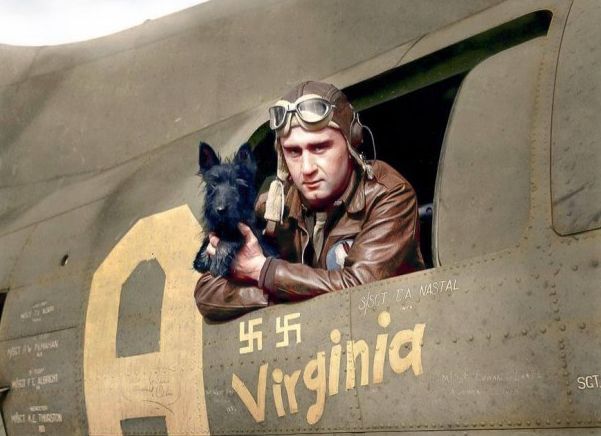 Член экипажа В-17 "Летающая крепость" с талисманом эскадрильи по имени "Штука". Британия, 1943.
