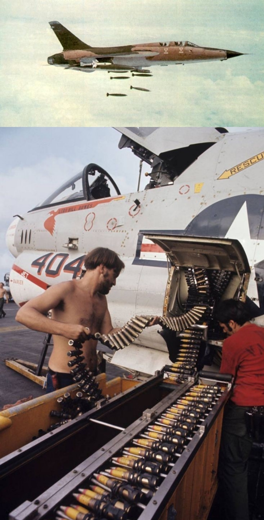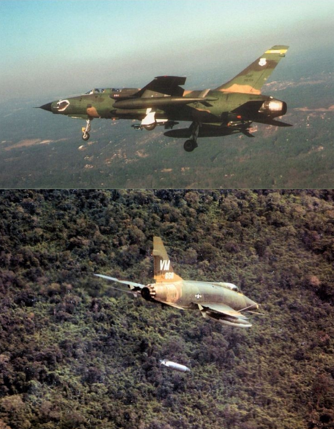Однако из-за недостатка сил и средств в 1964 г. по ДРВ было нанесено лишь несколько ударов. Зато американцам удалось построить или модернизировать десятки военно-воздушных баз в Таиланде и Южном Вьетнаме, разместить на них примерно 330 тактических самолетов. Основу группировки американских ВВС составили истребители-бомбардировщики F-105. Thunderchief и F-100 Super Sabre, имелись также новые истребители F-4C Phantom II, для ведения разведки использовались RF-101 Voodoo и RF-4C Phantom П. С целью защиты авиабаз от возможного воздушного нападения были переброшены две эскадрильи перехватчиков F-102 Delta Dagger, оказавшихся «самыми бесполезными самолетами в Юго-Восточной Азии». В Тонкинском заливе были сформированы две мощные авианосные группировки: Yankee Station (более 200 палубных штурмовиков и истребителей) у берегов ДРВ и Dixy Station — у берегов Южного Вьетнама. Авиация флота в основном располагала истребителями F-4B Phantom И, F-8 Crusaider, штурмовиками А-4 Skyhawk, A-1 Skyraider.