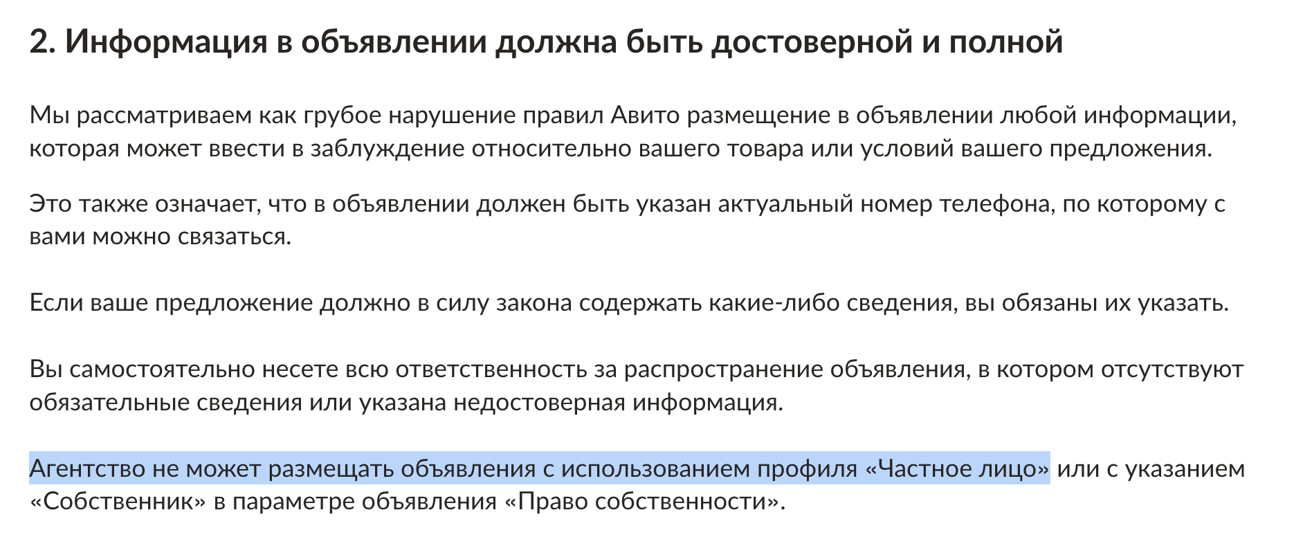 Выглядит странно, на правда ли? Может быть, это ок, и правила Avito это не нарушает? Ну что же, посмотрим правила: