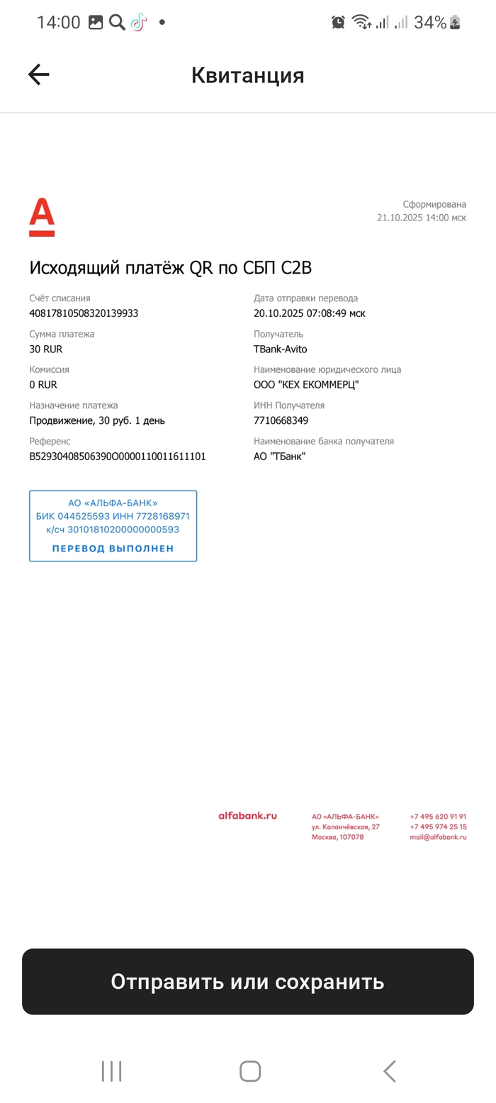 Кроме того, в аккаунте 89184630905 были оплачены продвижения на объявления (на сутки) , но в связи с блокировкой услуги не были оказаны в полном объёме. Сохранились все платёжные документы.