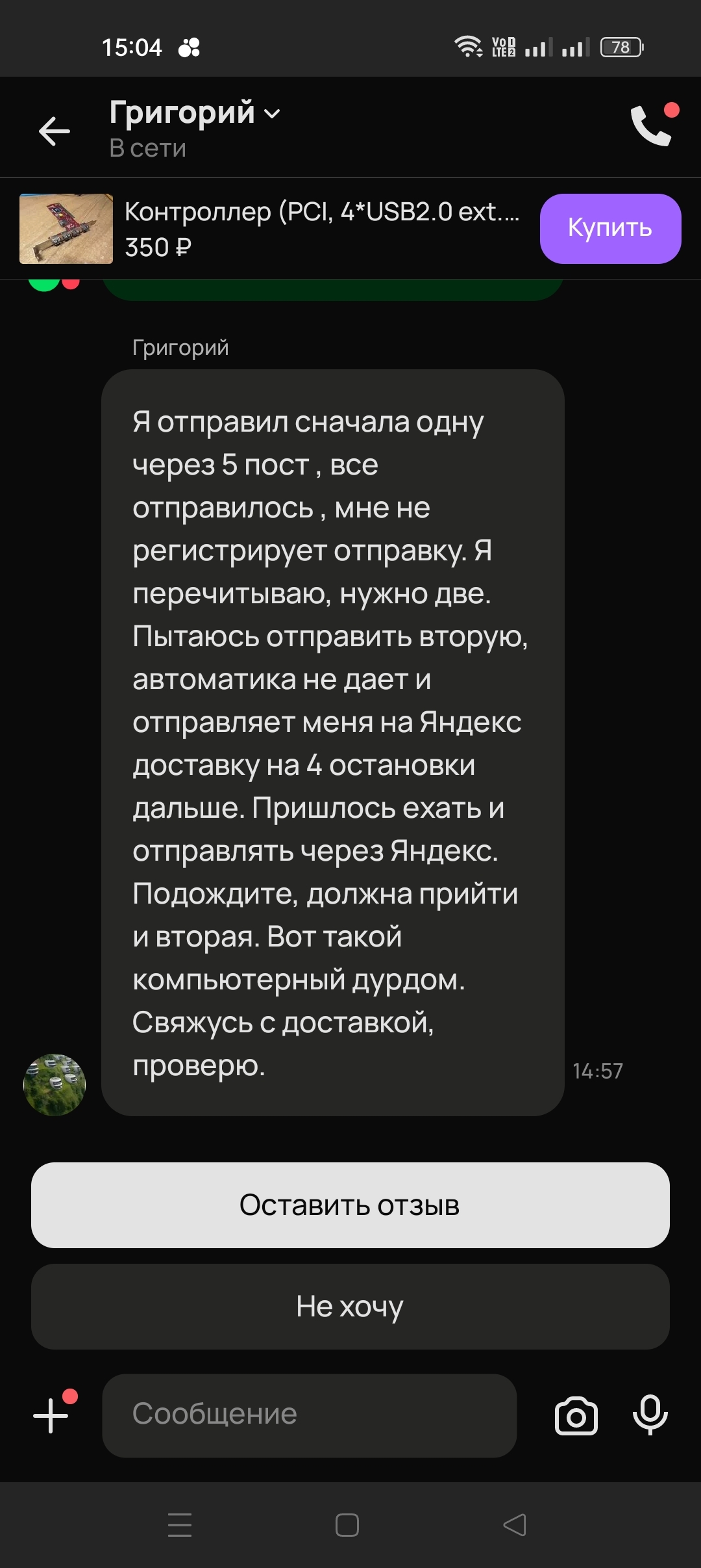 Продавец пишет, что это я виноват и мне надо было самому все уточнять (?), потому что цифры мелкие (шта?). Ну хрен с ним, ставлю отзыв, чтобы люди знали об этом мутном типе и мне прилетает "месть".