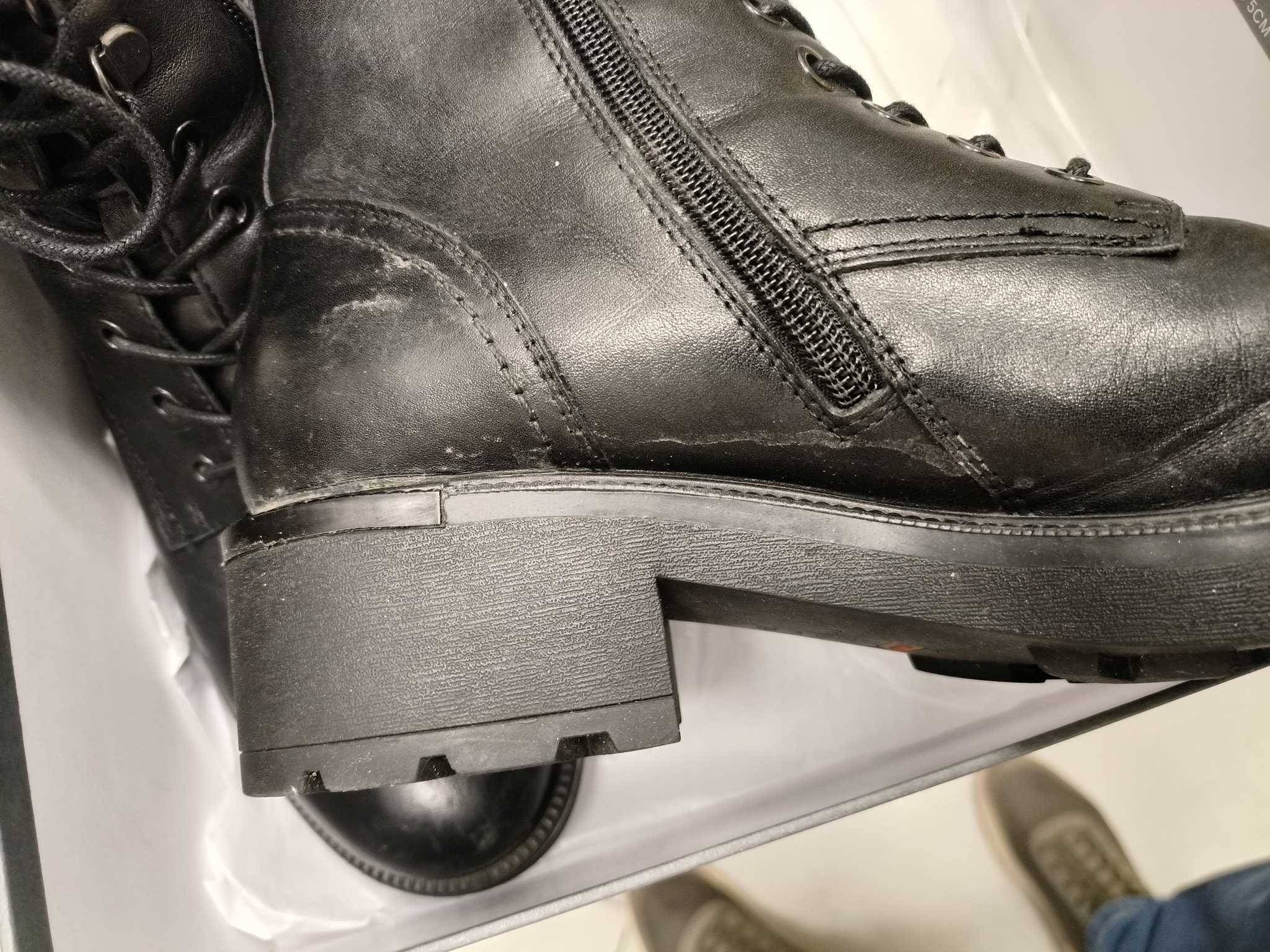 Отправил товар доставкой, покупатель не принял, оставив негативный отзыв о том что на ботинках сбиты носы. Товар вернулся, пришел получать и что я вижу… Коробка которая была целая, сильно повреждена, на обуви появились повреждения которых не было при отправке, на фото это видно. При чем на обуви даже появились следы солевых разводов. Как это возможно, обувь в пункте одели и начали ходить по снегу и лужам на улице ? Или кто то решил доставить её покупателю одев на ноги))).