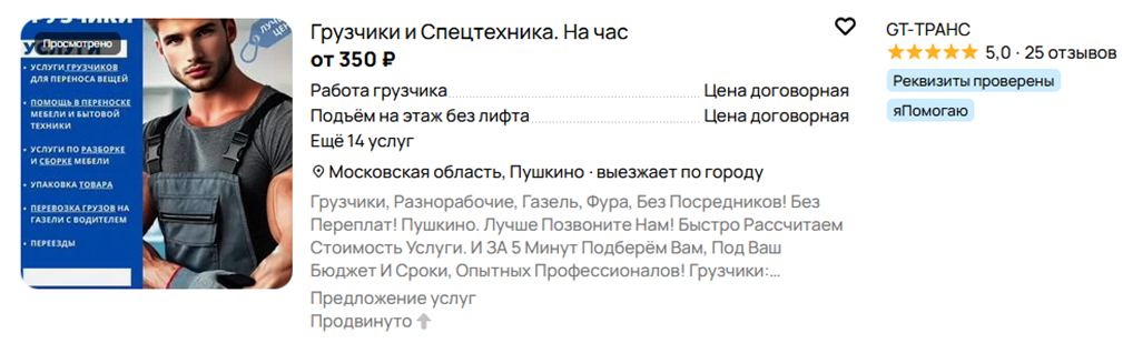 Подняли все вещи в квартиру. Когда дело дошло до оплаты выясняется что хозяева и заказчик это разные люди. Хозяева сказали что заказали грузчиков на Авито и оплату произвели человеку у которого сделали заказ причем оплатили 8000р (нам двоим с напарником Руслан обещал заплатить по 2000). Мне и напарнику Руслан перестал отвечать на сообщения. Попросили хозяев набрать Руслану и прояснить ситуацию, но он и им не стал больше отвечать. Тогда они позвонили на объявление там ответил Валерий, представился как руководитель, но когда выслушал претензии он начал грубить, хозяева сказали что отставят ему отзыв на Авито что он мошенник, на что он ответил что ему все равно так как у них ЕСТЬ ПЕРСОНАЛЬНЫЙ МЕНЕДЖЕР ОТ АВИТО, КОТОРЫЙ РЕШАЕТ ПРОБЛЕМЫ С НЕГАТИВНЫМИ ОТЗЫВАМИ И В ДОБАВОК БЛОКИРУЕТ АККАУНТЫ ТЕХ КТО НА НИХ ЖАЛУЕТСЯ!!! (это на заметку тем у кого заблокировали аккаунт, может вы так же мошенникам отзыв оставили и вас за это наказали менеджера Авито)