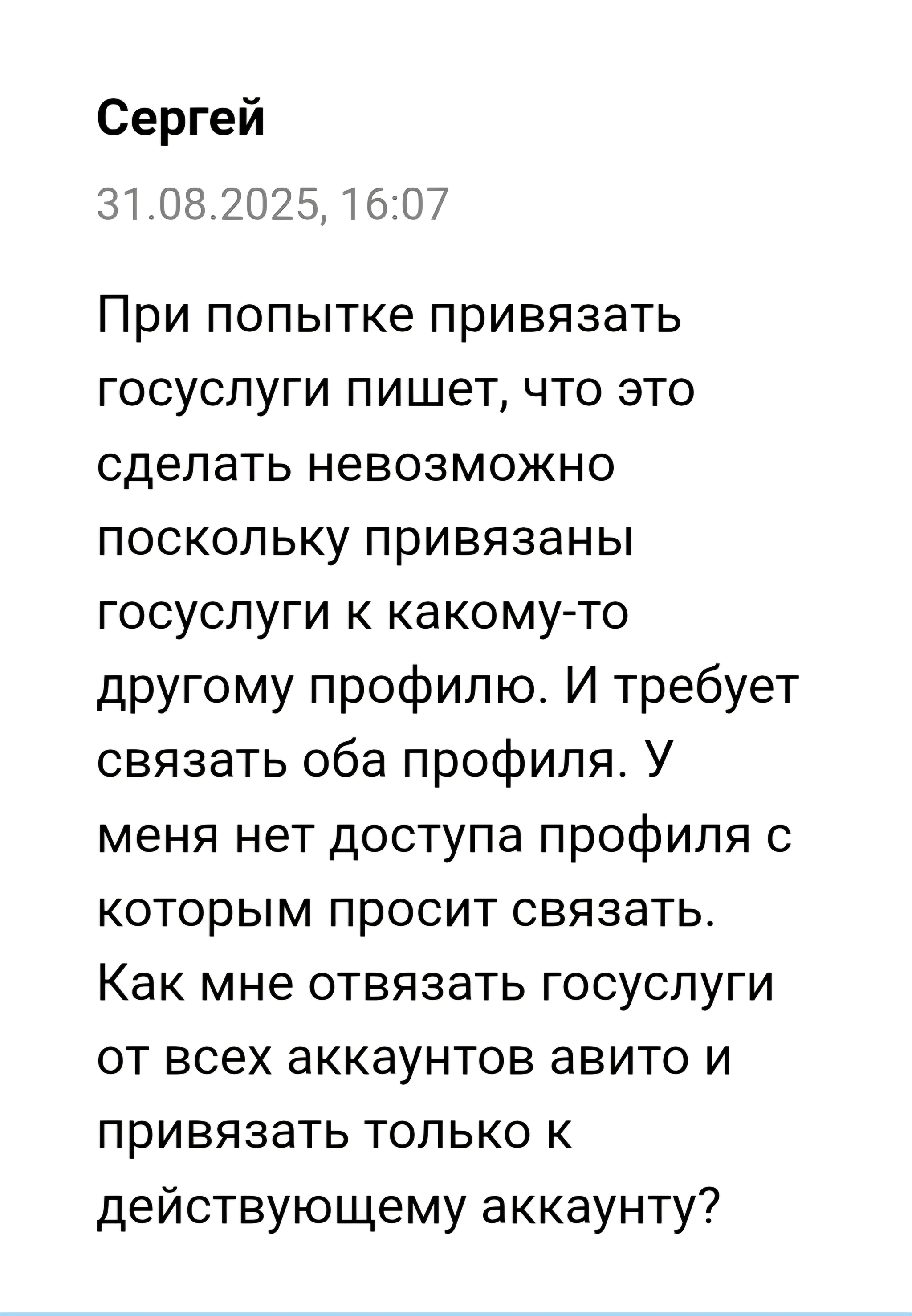 Может кто сталкивался с ситуацией и может помочь? Создал объявление с продажей машины и подтвердил по документам владение. Появился значок собственник. Через полгода опять запросили проверку и хотел пройти проверку уже через госуслуги. Но выяснилось, что когда то делал это на другом аккаунте. Доступа к нему нет, и войти в него не могу. Когда попросил авито разобраться с ситуацией, пишут что у них лапки. Есть у кого-то совет или идеи?