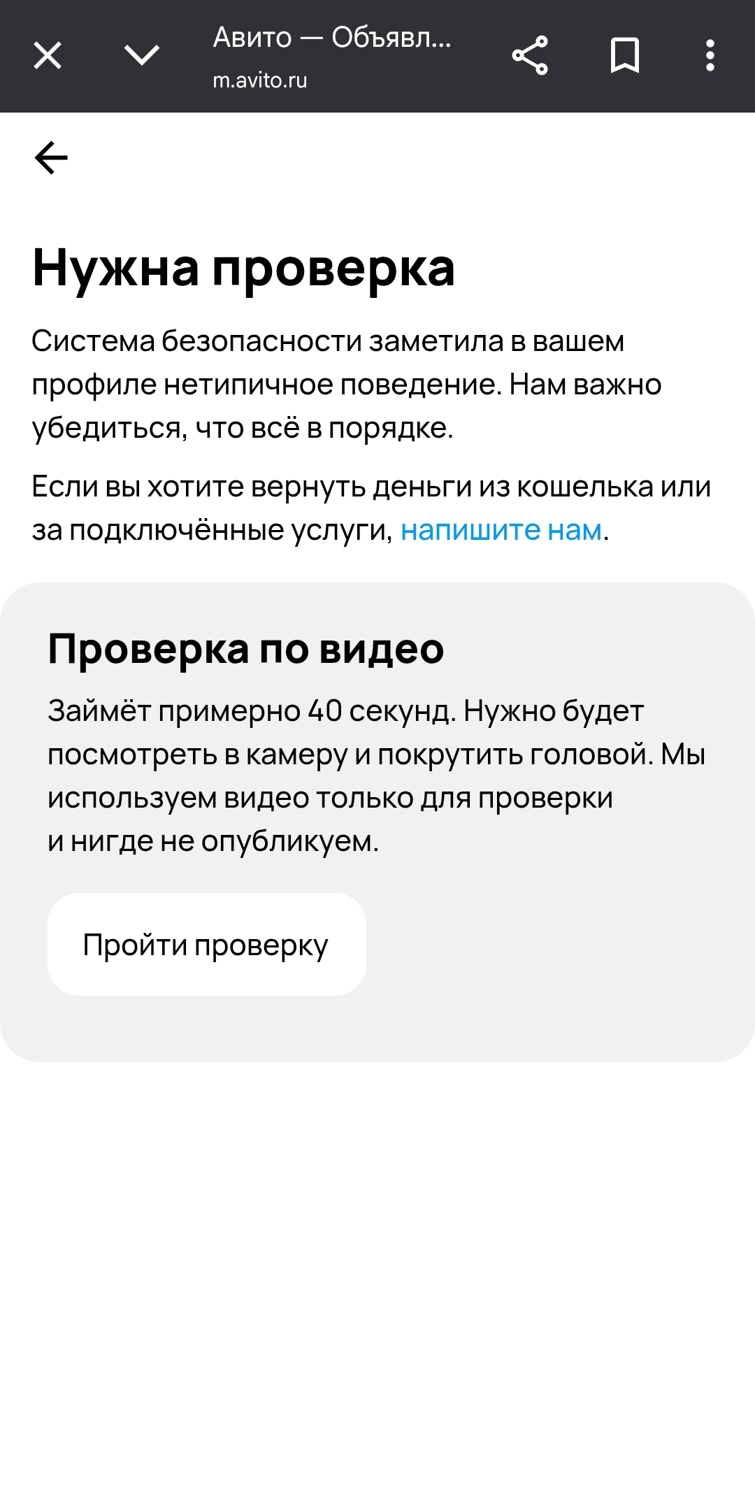 ! Вчера получил письмо на почту, что на моем аккаунте подозрительная активность, я зашёл в акааунт и увидел ,что требуется пройти ещё раз проверку по видеосвязи, дойдя до последнего этапа вылазит ошибка , не запуская видеопроверку. Мой аккаунт связан со сдачей аренды по суточно, в поддержке мне помочь не могут, с клиентами у меня связи нет, из-за этого я потеряю деньги и рейтинг, а клиенты останутся на улице, пробовал пройти проверку и на компьютере и приложение и с других устройств