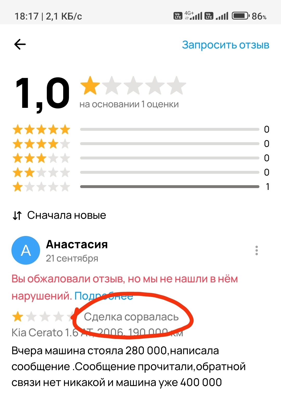 2 Есть официальный ответ Farwy Про сайт объявлений Авито не удаляет отзыв с нарушением 1 месяц назад В отзыве указано что "сделка сорвалась". Но как видно из чата, никакой сделки и тем более договоренности не было. [моё] Авито Негатив Правила Служба поддержки Длиннопост Ещё 0