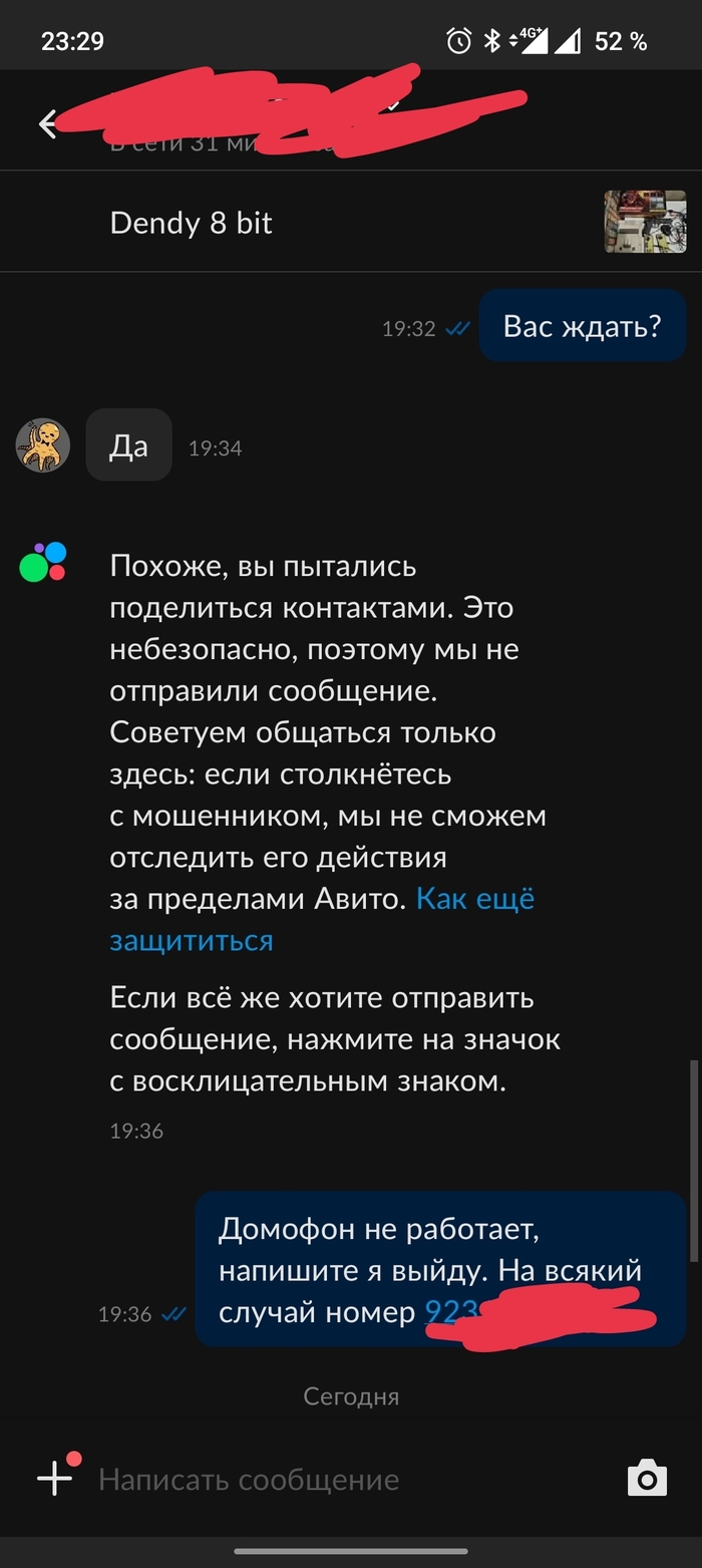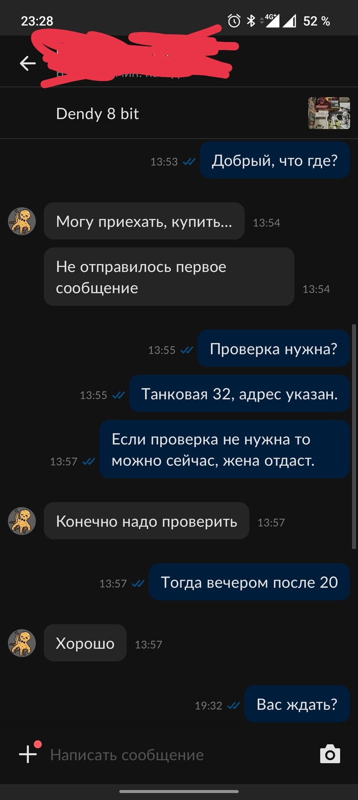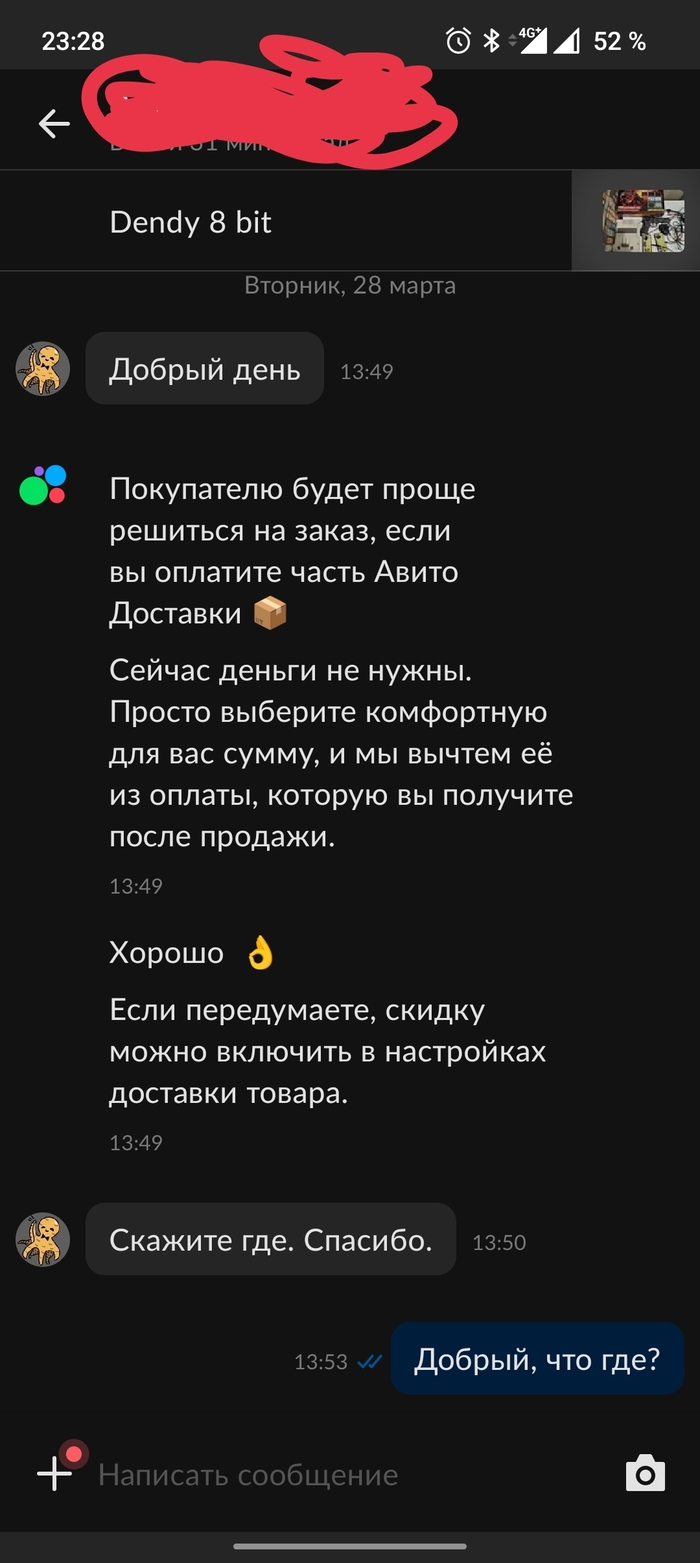 Продаю дендик на авито, договорились с покупателем о встрече, тот не явился и даже до вечера следующего дня не читал мое последнее сообщение.