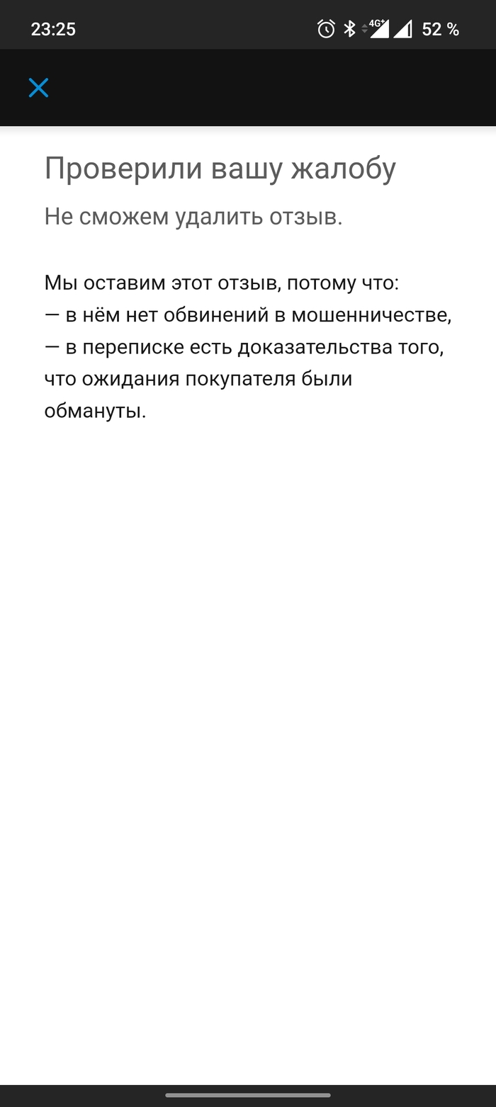 Я настрочил ему ответ и аппеляцию на удаление отзыва. Но поддержка ничего не заметила как обычно. Видно же что он ни чего мне не писал даже.