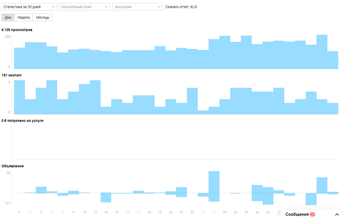 Примерно месяц назад мы провели нехитрые изменения, и количество просмотров и контактов возросло в 2-3 раза. Но теперь Авито говорит, что все, больше нет в этом твоих заслуг. Больше смотрят = больше платишь. Мотивации увеличивать просмотры просто нет.