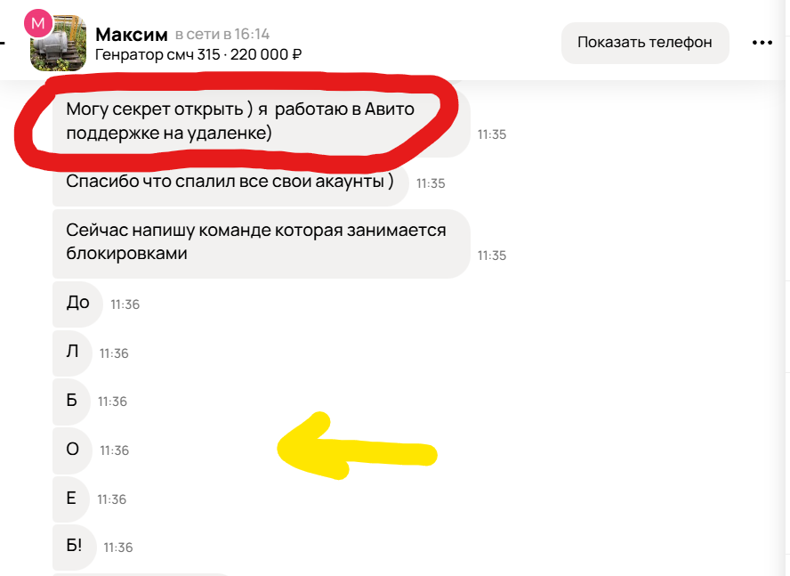 4) Пользователь представляется сотрудником Авито и угрожает мне блокировкой