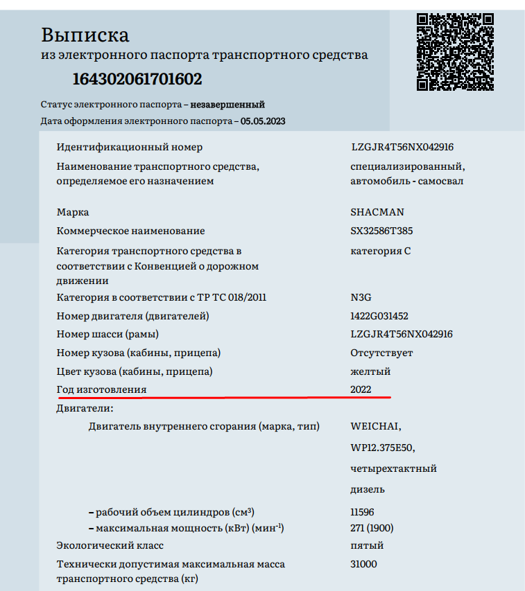 Вот вин в объявлении LZGJR4T56NX042916, в объявлении я указал год изготовления 2022.