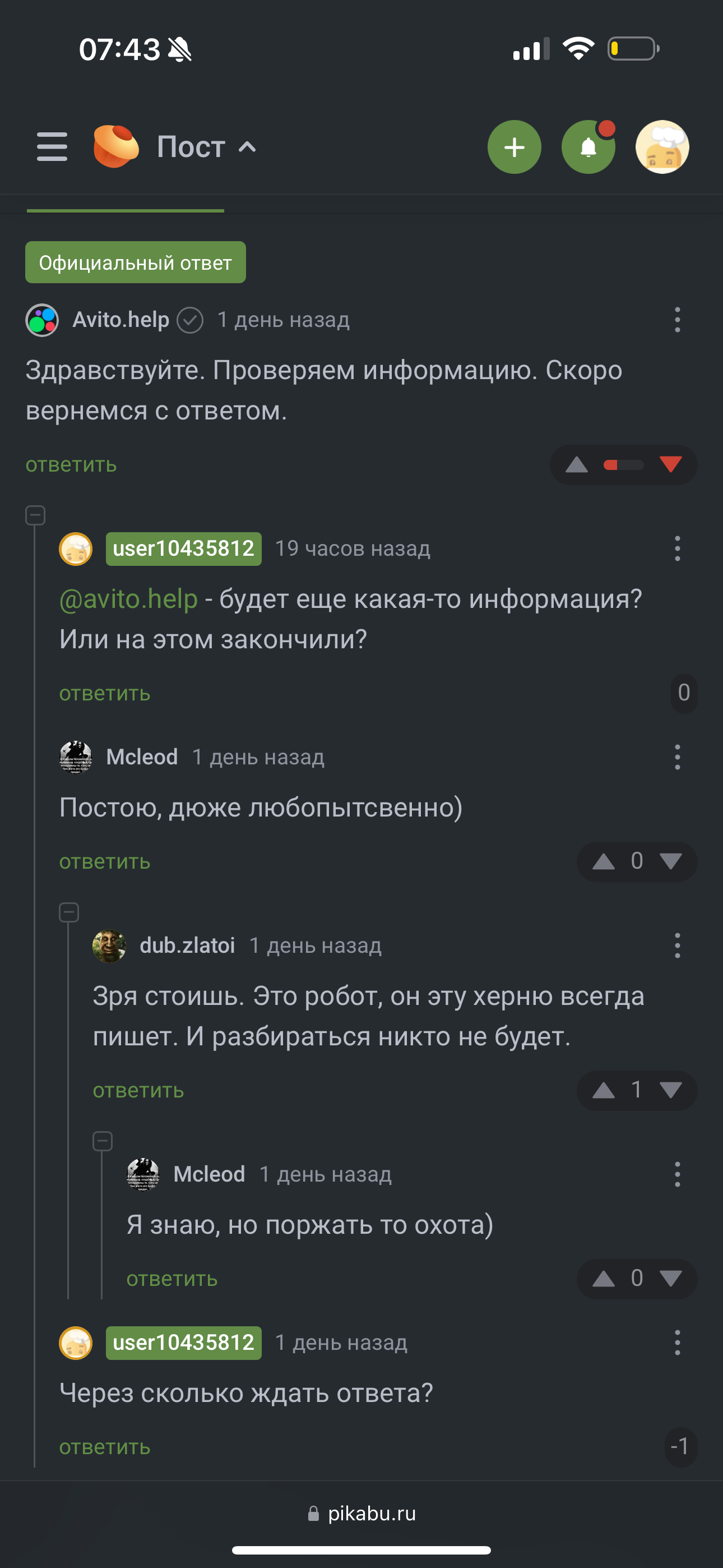 @Avito @Avito.help - доброго утра. По всей видимости, такие же роботы. Во всяком случае, решения проблемы нет даже близко. Ответов окормя стандартного ждите, тоже не поступило!