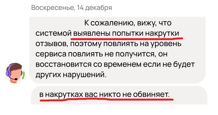 Но меня обвиняют в накрутках, мои объявления показываются в конце поиска.