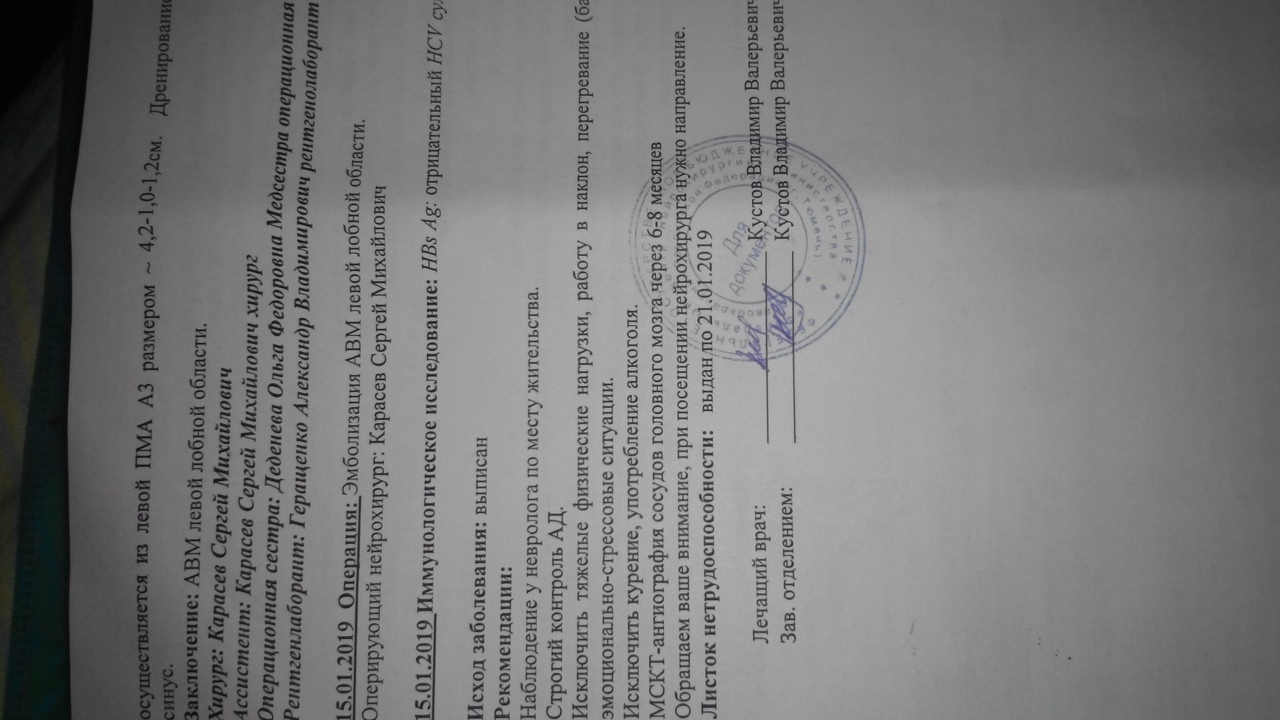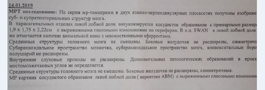 Всем привет. Для всех кого интересует тема АВМ, хотелось бы поделиться своей историей болезни. Только сегодня, меня выписали из Тюменского ФЦН, где и проводилось эндоваскулярное заклеивание моей АВмальформации. Что хочу отметить, я долго к этому шла, даже дошла до разрыва сосуда, о котором смутно подозревала и который подтвердился снимками. Но видимо перенесла все на ногах и даже продолжала заниматься любимыми танцами.