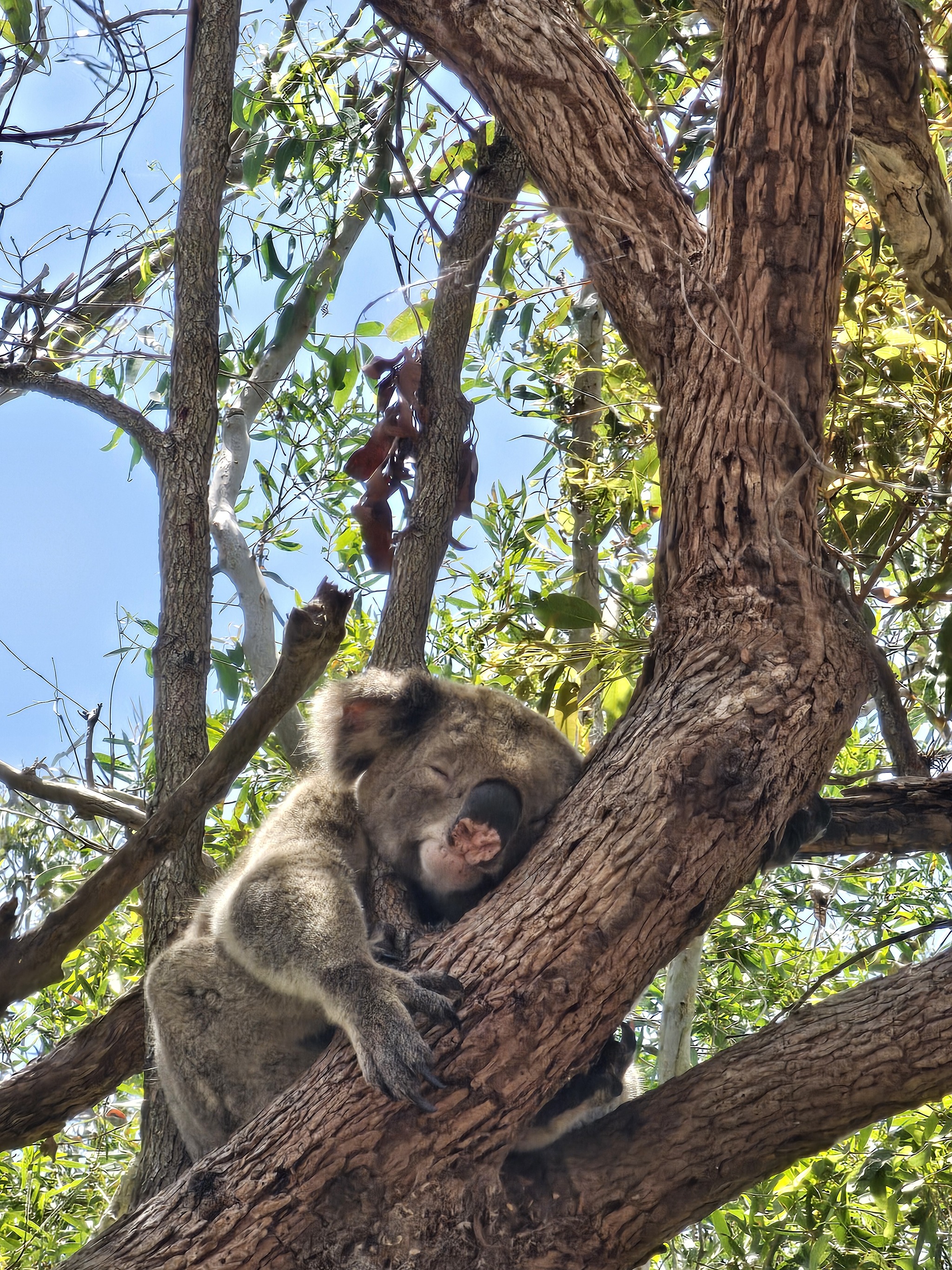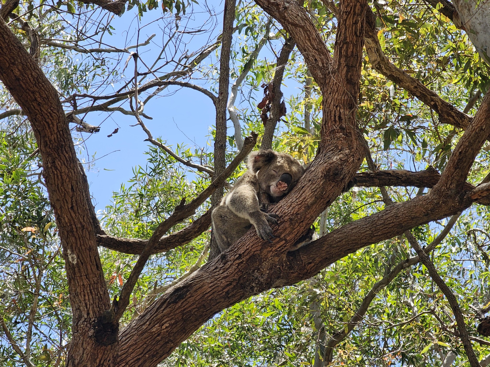 И не успели упрыгать первые кенгуру, как мы нашли дремавшую на дереве коалу. Сами посмотрите как милые чебурашки тут живут)))