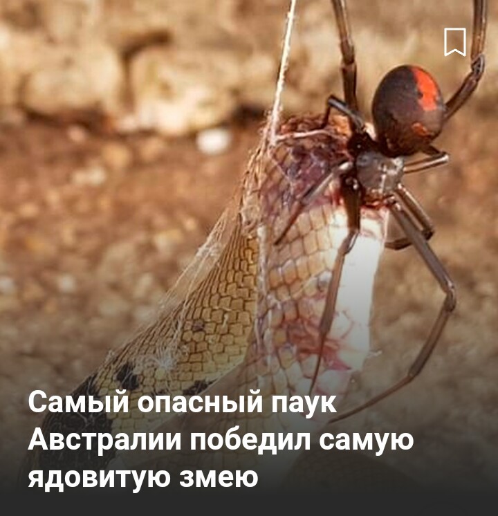 Любительница природы из Австралии сфотографировала австралийскую вдову, одолевшую сетчатую коричневую змею, которая была в несколько раз больше нее.