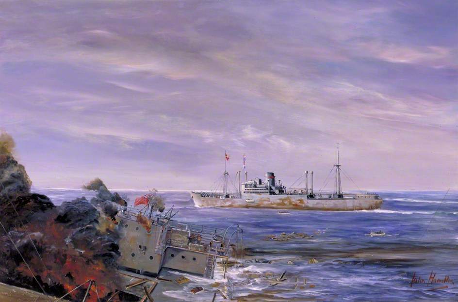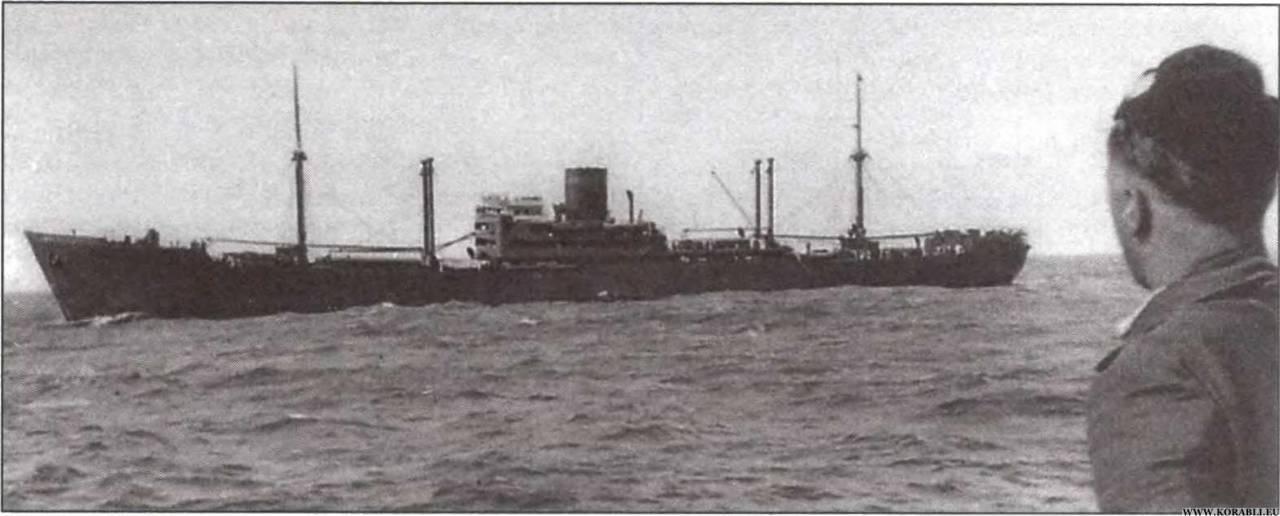 Счет был открыт, наконец, 6 января 1941 года. В качестве почина был остановлен греческий пароход «Антонис», перевозивший уголь по британскому фрахту. После соответствующих процедур, сняв команду и 7 живых овец, а также несколько пулеметов и патронов к ним, «Антонис» потопили. В следующий раз удача улыбнулась немцам 18 января. Непосредственно перед наступлением темноты с рейдера был замечен неизвестный пароход, который двигался противолодочным зигзагом. Детмерс знал, что подобные действия предписывает гражданским судам Британское адмиралтейство, – подобная инструкция была недавно захвачена рейдером «Атлантис». Сблизившись на дистанцию 4 мили, немцы вначале выпустили осветительные ракеты а потом, когда пароход, оказавшийся танкером, не отреагировал, – открыли огонь. Британец (а уже не было никаких сомнений, что это он) передал в эфир сигнал RRR. Третий залп накрыл цель, и радио замолчало. Когда «Корморан» подошел ближе, с танкера неожиданно загрохотала пушка, успевшая сделать четыре выстрела, после чего возобновивший огонь рейдер поджег корму своей жертве. С «Бритиш Юнион» – так назывался незадачливый танкер – начали спускать шлюпки. Уцелевшая часть экипажа была спасена, а корабль отправлен на дно. Детмерс спешил поскорее покинуть район – сигнал тревоги, поднятый «Бритиш Юнион», сулил неприятные встречи. К месту гибели танкера полным ходом шел австралийский вспомогательный крейсер «Аруа», ему удалось выловить из воды еще восьмерых англичан, которые и пролили свет на произошедшие здесь события. В британских документах неизвестный пока что большой рейдер получил наименование «Рейдер G».