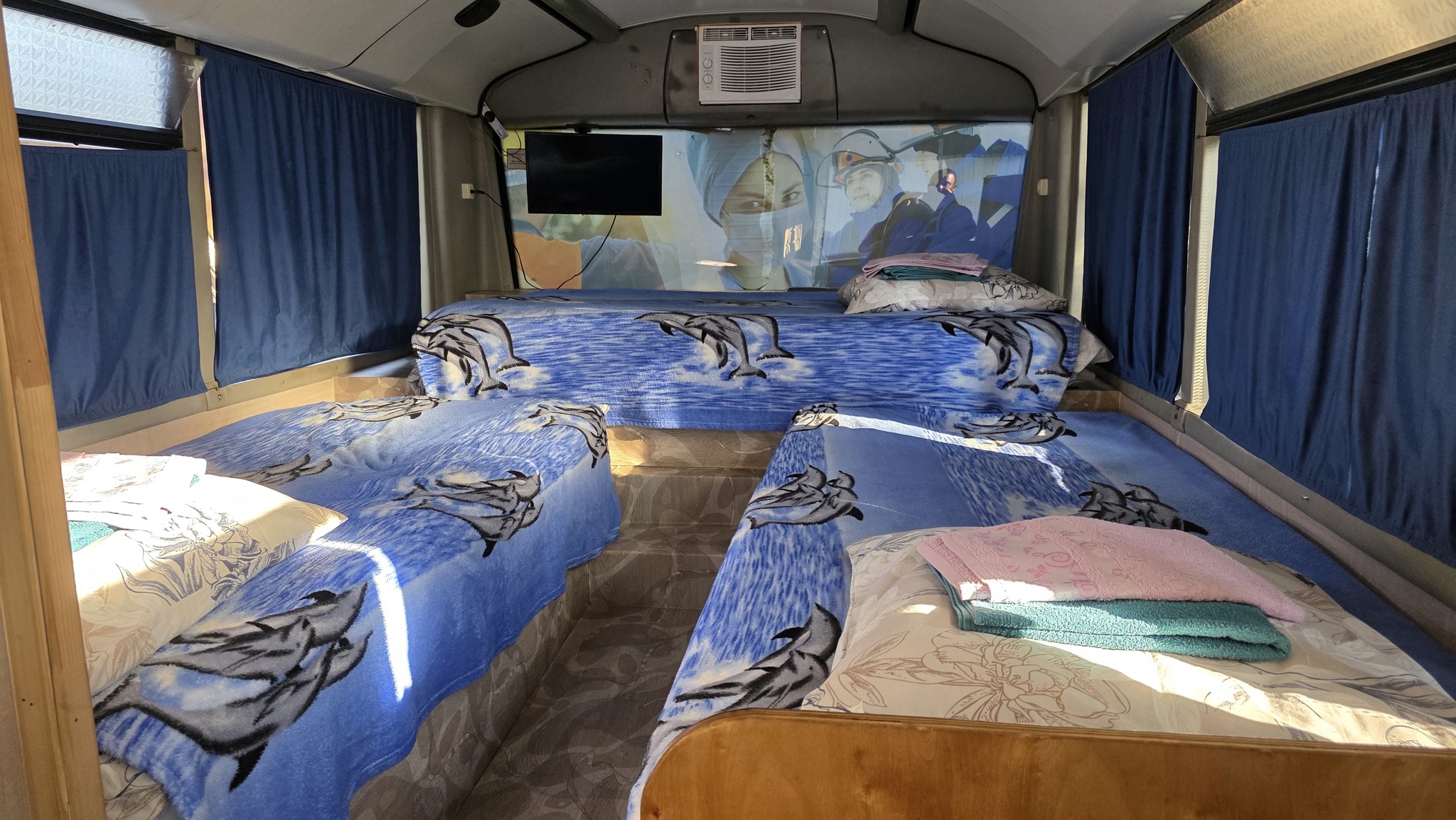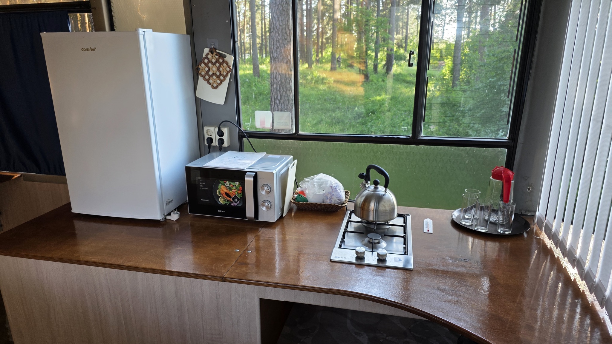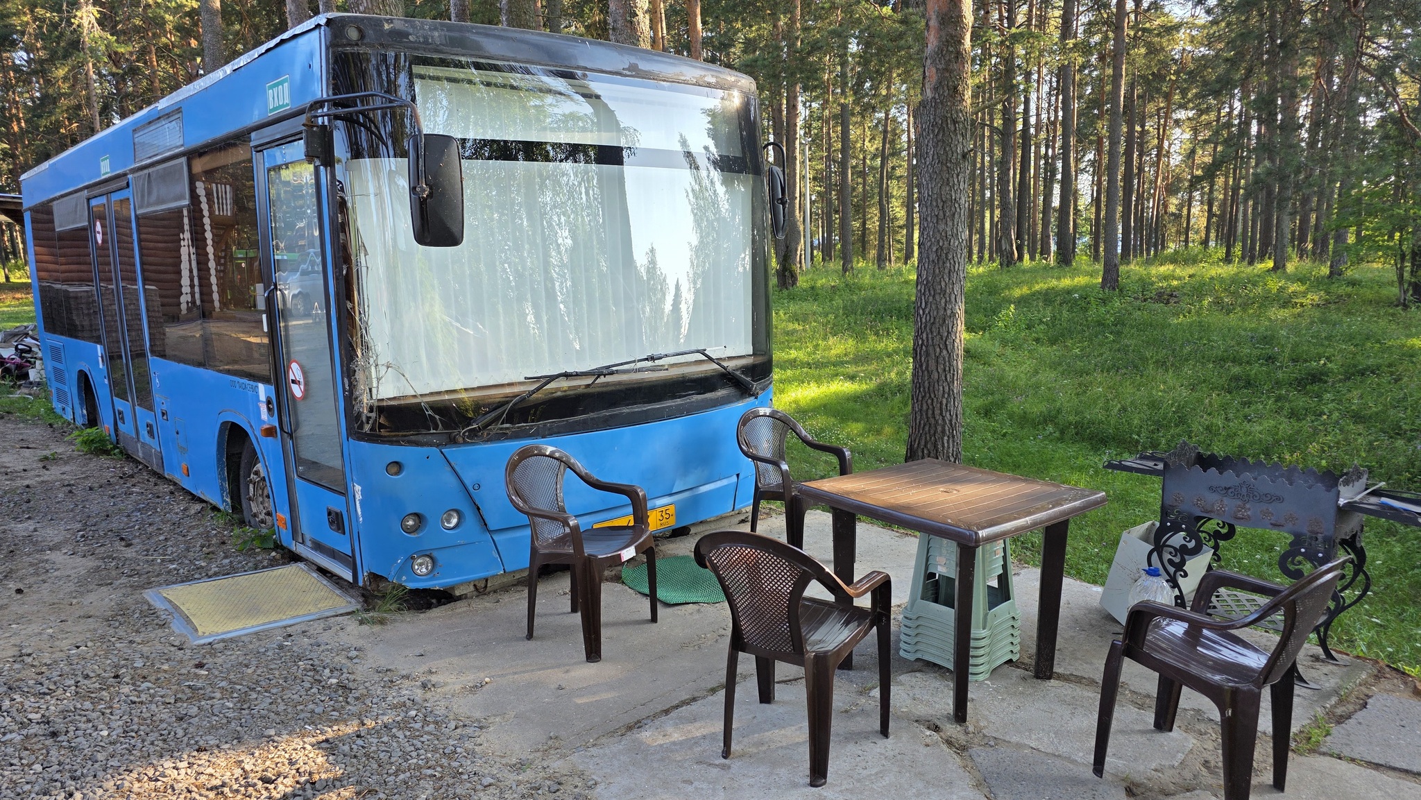 Сегодня остановился в очень интересном месте. Автобус переделан в небольшой номер отеля. В номере 3 спальных места, небольшая кухня и сунузел. Все компактно, но очень комфортно.