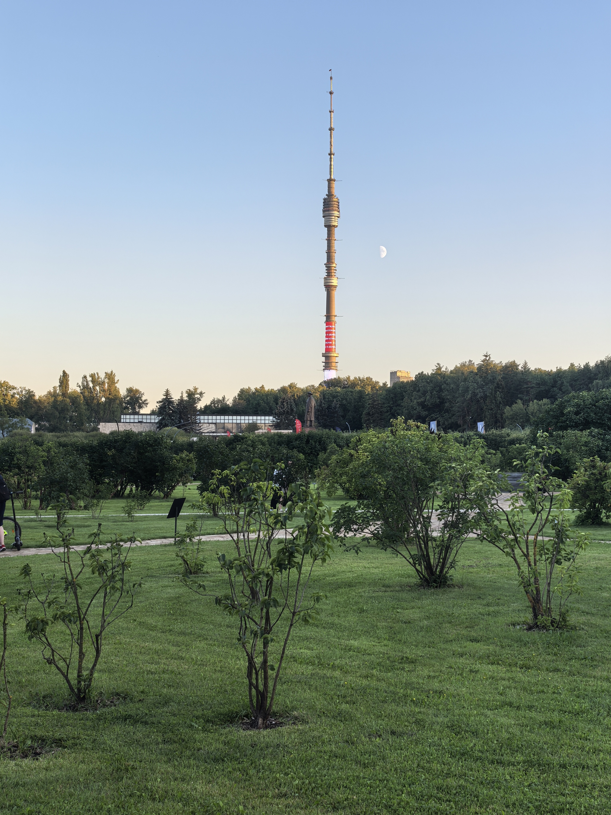 просто фото башни и луны в лучах заката