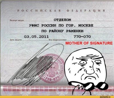 у тебя. в пасспорте. МОЯ. подпись. МОЯ личная подпись!!! как звать? Илья или Иван?