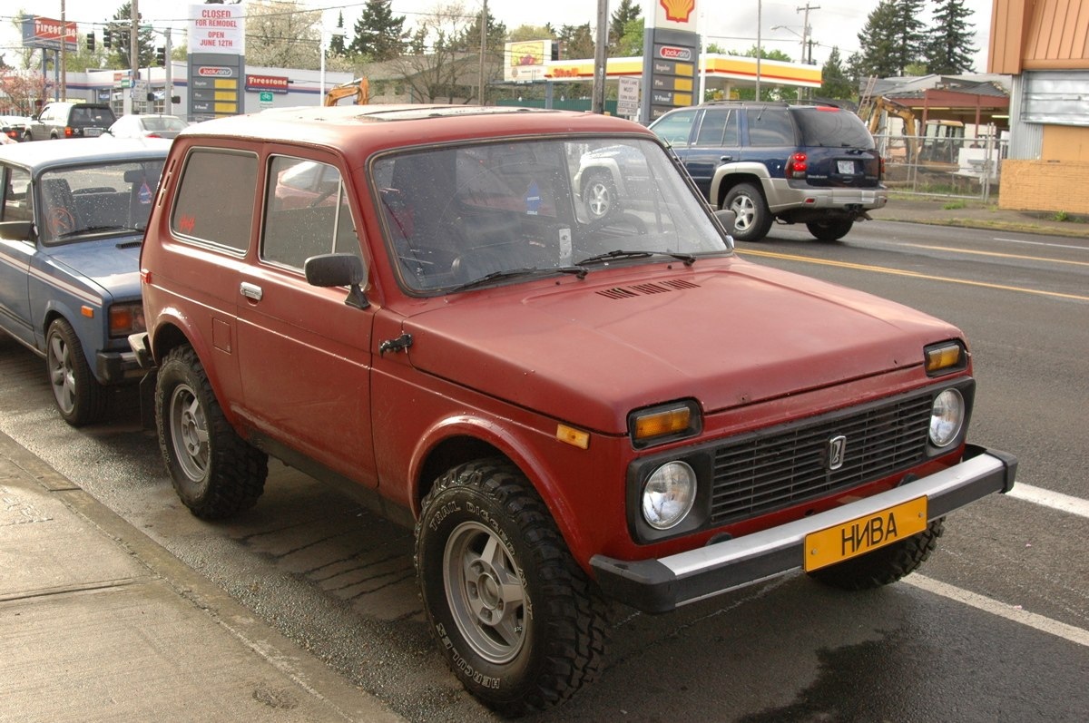 В Канаде "Нива" также продавалась, причем имела специфическую расцветку - чаще всего мне на фотографиях встречались "канадки" красного цвета. Кроме расцветки "канадка" отличалась светотехникой, измененной в соответствие с заокеанскими стандартами – габариты над головной оптикой сменили цвет с белого на оранжевый, а задние указатели окрасились в красный.