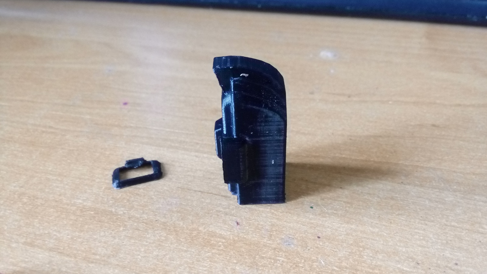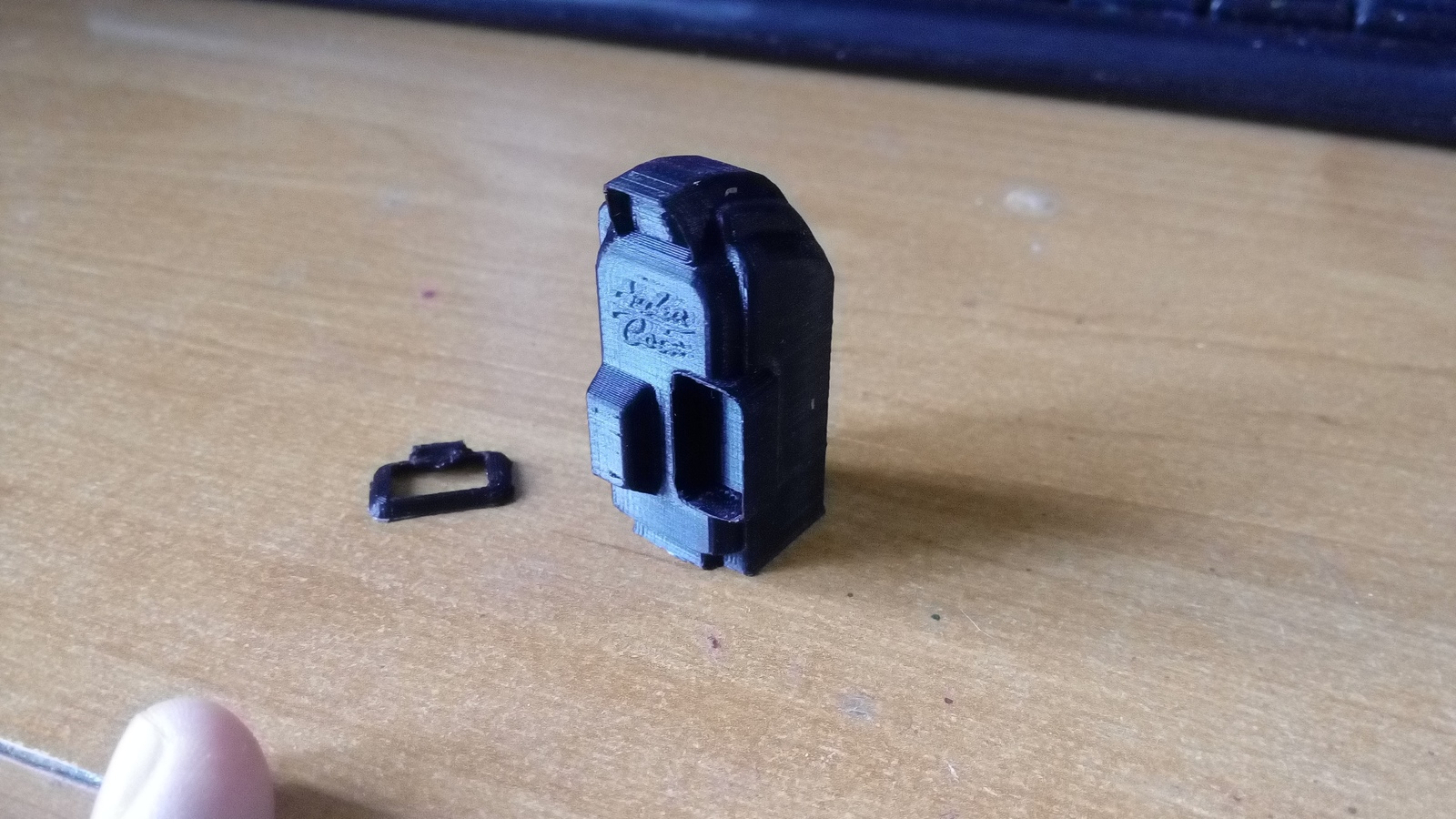 Вот в таком виде была получена модель. На первом фото уже чутка пошкурил. Знаю, что ABS можно править ацетоном, но под рукой не нашлось, да и шкурка, кмк, управляемей, чем ватный диск с плавящей жижей.