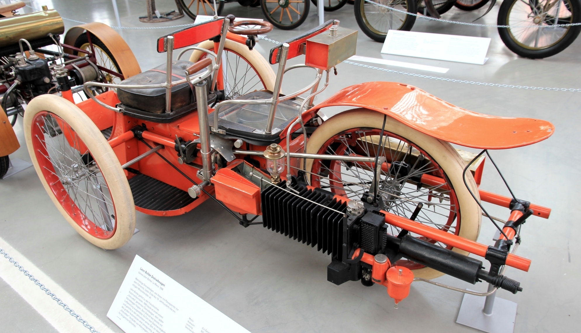 Автомобиль имел одноцилиндровый горизонтальный двигатель воздушного охлаждения. Справа внизу располагался прогрессивный для того времени карбюратор распылительного типа с поплавковой камерой. Под сиденьем водителя находилась трёхступенчатая коробка передач с зубчатым зацеплением. Слева от водителя был рычаг.